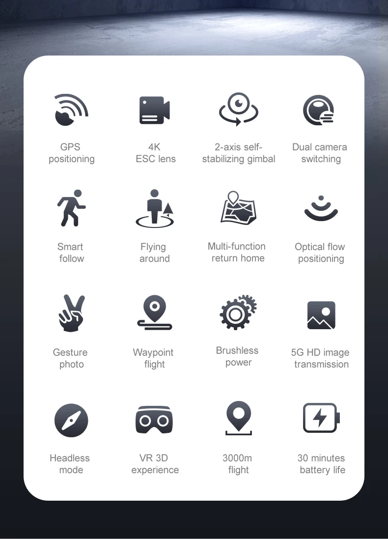 Основная информация: Название продукта: Бесщеточный Квадрокоптер с GPS Код товара: M1 / M1 PRO цвет изделия: черный размер изделия: 45x40x12 см (перед складыванием) 21x11x9 см (после складывания) система позиционирования: спутниковый GPS навигатор/ГЛОНАСС с двумя режимами позиционирования бесщеточный двигатель Модель: 1806 M1 PRO: 2-оси anti-shake Gimbal информацию: время зарядки: Около 6 часов расстояние дистанционного управления: около 3000 м Расстояние передачи: около 1500 м высота пульта дистанционного управления: около 120 м распознавание жестов съемка: 1-3 м параметры воздушного изображения: Wifi частота: разрешение камеры 5G: 4096*3072 (APP) 4096*3072 (TF) Разрешение видео: 2048*1080 (APP) 2048*1080 (TF) память камеры: до 32G скорость передачи кадров: 25 кадров в секунду угол камеры ESC: 110 г» двухосевая стабилизация: нажмите на изображения с инновационными углами с двухосевой механической стабилизацией наклона этого мини-дрона. Камера панорамирования помогает достичь угла наклона 110 ˚, а угол вертикальной фотосъемки-90 ˚/+ 20 ˚. Управление одним нажатием кнопки: вы можете управлять самолетом, чтобы взлет, посадка и даже возвращение с расстояния одним щелчком мыши. Когда его призовут обратно, Дрон прибудет в исходное место, где он снимал. Recognition распознавание жестов: когда вы делаете жесты, смотрите на камеру дрона, стоя на расстоянии 1-3 м от нее, она будет щелкать на вашем изображении. Самолет умно распознает жесты и мгновенно превращает ваши счастливые минуты в вечные воспоминания. Фиксированное Окружение: Теперь снимайте крутые видео с помощью этого профессионального дрона без каких-либо дополнительных усилий. Закрепите точку, а затем установите радиальное расстояние с помощью джойстика и посмотрите, как Дрон снимает видео вокруг выбранного объекта. Share легко Делитесь фотографиями и видео: эти удивительные Квадрокоптеры позволяют вам поделиться фотографиями и видео, а также. В то время как вы можете поделиться несколькими фотографиями, одно Видео может быть передано одновременно. Исследуйте новые места и Усильте свои навыки в видеографии с помощью дрона с камерой NWE M1 Pro 4K HD. Он может лететь в течение 30 минут непрерывно и снимать удивительные hd-видео с частотой 25 кадров в секунду. Квадрокоптер также может похвастать отличным разрешением видео 2048 × 1080 и разрешением изображения 4096 × 3072. Вы также можете передавать изображения в режиме реального времени с помощью Wi-Fi на расстоянии до 600 м. Он имеет двухосевой антивибрационный самостабилизирующийся Дрон камера gimbal, который сделает ваши видео чрезвычайно стабилизированными. Снимайте видео спортсменов или Следуйте за летающей птицей выше! Дрон NWE с камерой 4K by поможет Вам воплотить в жизнь свою художественную мечту. Купите сейчас, чтобы доставить это удивительное устройство в Ваше следующее путешествие с вами!