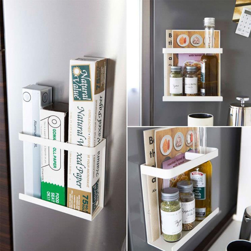 F1CC Магнитная Полка для специй, одноуровневая полка для хранения холодильника, органайзер, боковая полка для холодильника, кухонная Пластиковая Полка держатель для обертки