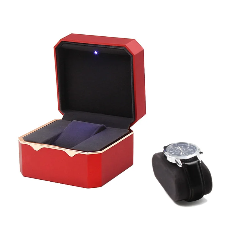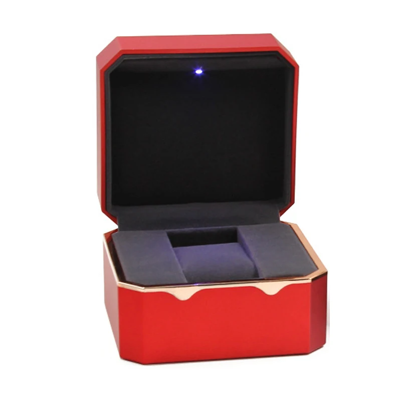 Вишневый светильник светодиодный ювелирный ящик для часов Делюкс для помолвки, предложения или особых случаев с черной вставкой