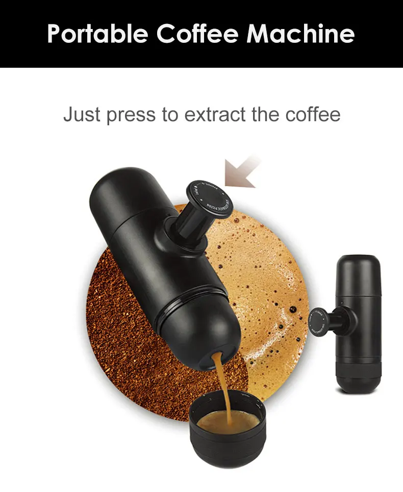 1.Креативный дизайн: размер менее 20 см, компактный и легкий.2. Мощный: реализовать концепцию простого в использовании дизайна и извлечь кофе, нажав полуавтоматический поршень.3. Эффективный и практичный: основная часть корпуса чашки, полуавтоматический поршень, легко контролировать извлечение яркого.4. Легко носить с собой: простой и быстрый в использовании, ручная кофемашина, вы можете подготовить удивительный эспрессо в любом месте.Описание: 1. Простой и быстрый в использовании, ручная кофемашина, вы можете подготовить удивительный эспрессо в любом месте.Характеристики: Материал: пластик PP, нержавеющая сталь 304Цвет силикона:Черный Размер: 196*55*40 ммПосылка в комплекте: 1 ручная кофемашина