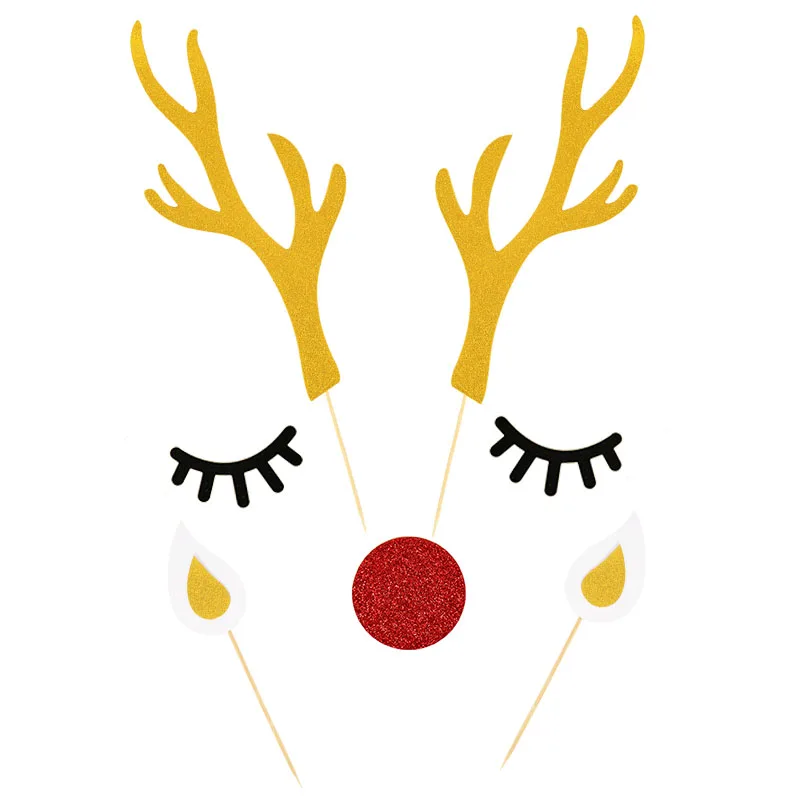 Лося торт Топпер: Вы получите 1 упаковку рогатого торта и каждый пакет включает в себя: 1 пара рогатый олень, 1 пара ушей, 1 пара глаз, 1 шт. красный нос.