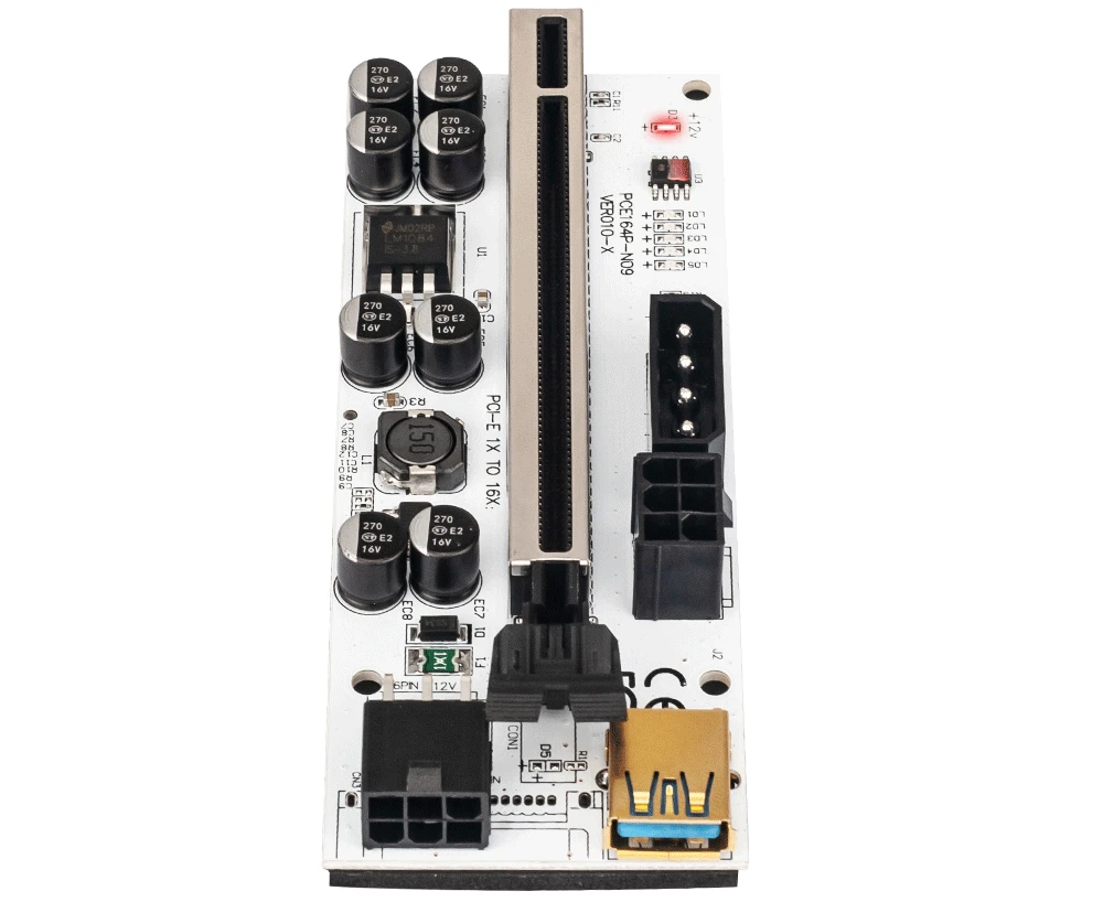 Наборы переходников версии 010X-это новейшее и верхнее линейное решение для настройки горных установок GPU. 4PIN и две графические карты 6PIN интерфейс являются необязательными для питания, что обеспечивает независимое питание графической карты и уменьшает нагрузку на материнскую плату при использовании большего количества графических карт. Светодиодный дисплей, 8 твердых конденсаторов, 60 см USB 3,0 кабель, подходит для всех оконных систем, LINUX и MAC.