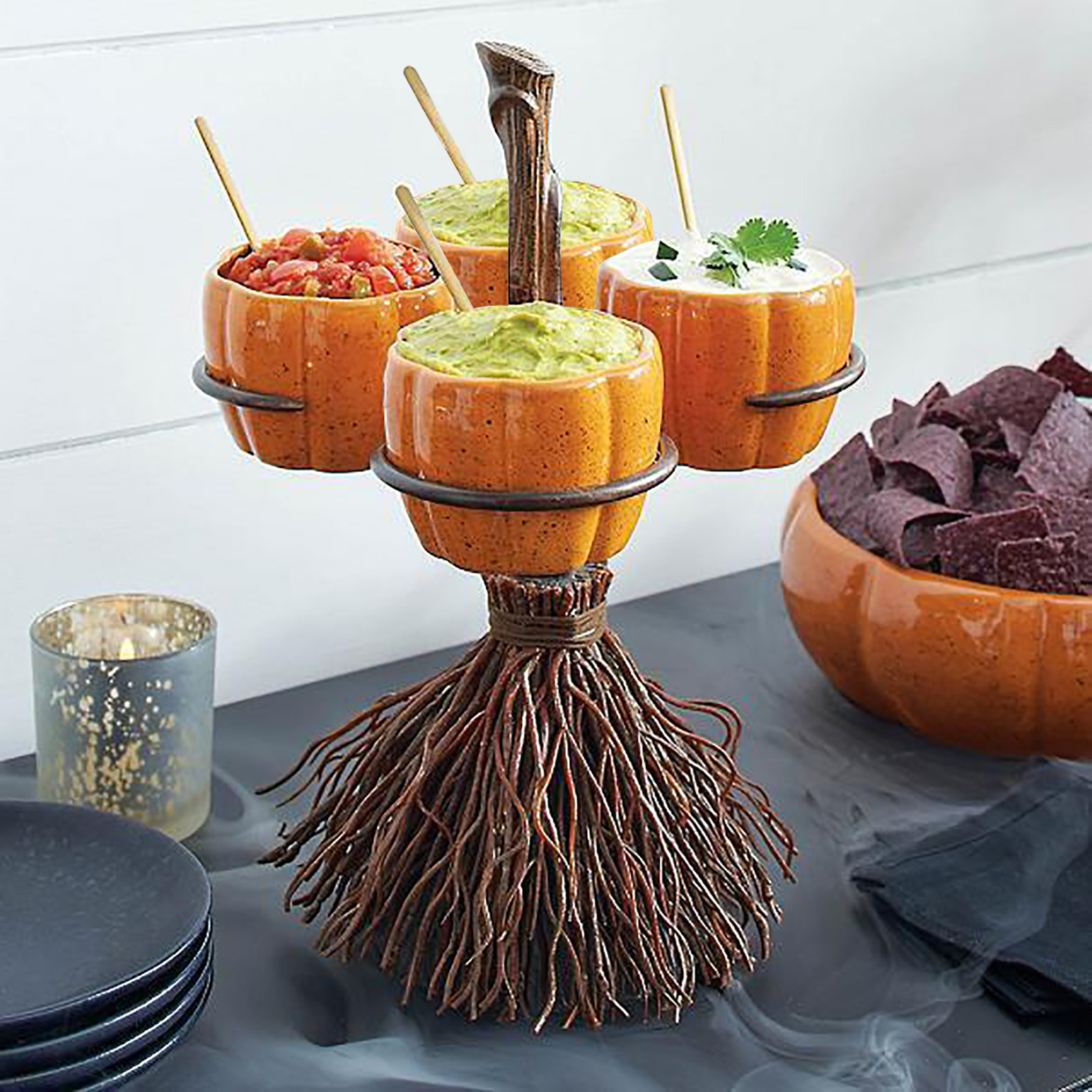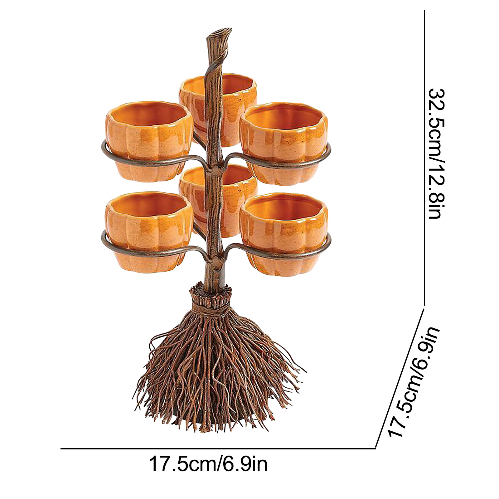 Это Аутентичная настольная метла реквизит-три/четыре/шесть керамических тыквы Формы чаши, которые могут держать все виды вкусной еды.Каждая стойка для закусок имеет соответствующее количество чашек для тыквы