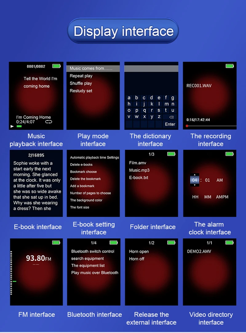 1,8 дюймовое металлическое сенсорный MP3 музыкальный плеер Bluetooth совместимым 4,2 поддерживает карты FM будильник шагомер электронная книга Встроенный динамик