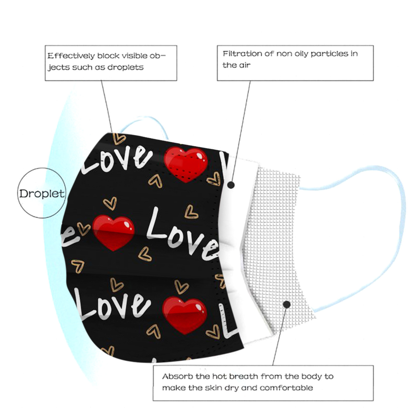 В 3 слоя Нетканая одноразовая маска изготовлена из 3 слоев нетканого материала, Безопасен и безопасен для использования. Дышащий материал и милый Узоры, которые делают его полезным и модным. Специальный 3 слоя из нетканого материала Дизайн, обеспечивает некоторую защиту от пыли, автомобильных выхлопных газов, Пыльца и т. д. эластичная Ушная петля, легко носить и не давит на уши. Маникюрный салон или любые другие области, где может потребоваться защита