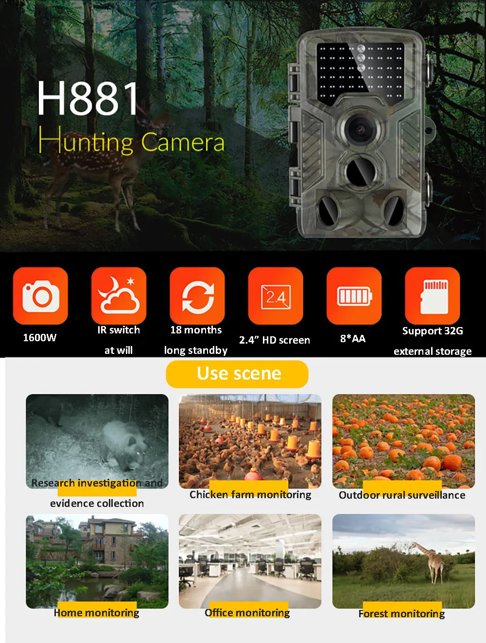 HD 1080P охотничья камера H881 инфракрасное ночное видение дикая природа Скаутинг охотничья тропа Камера Быстрый триггер время 120 ° дропшиппинг