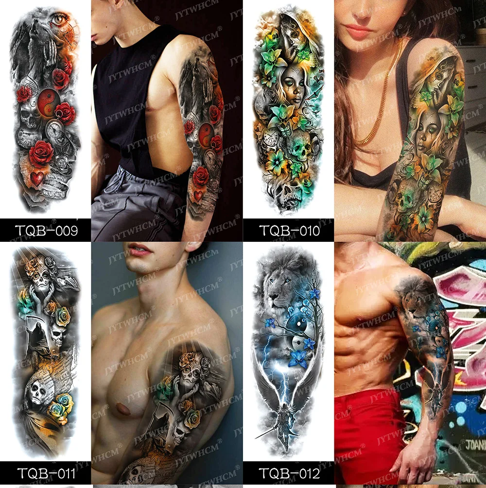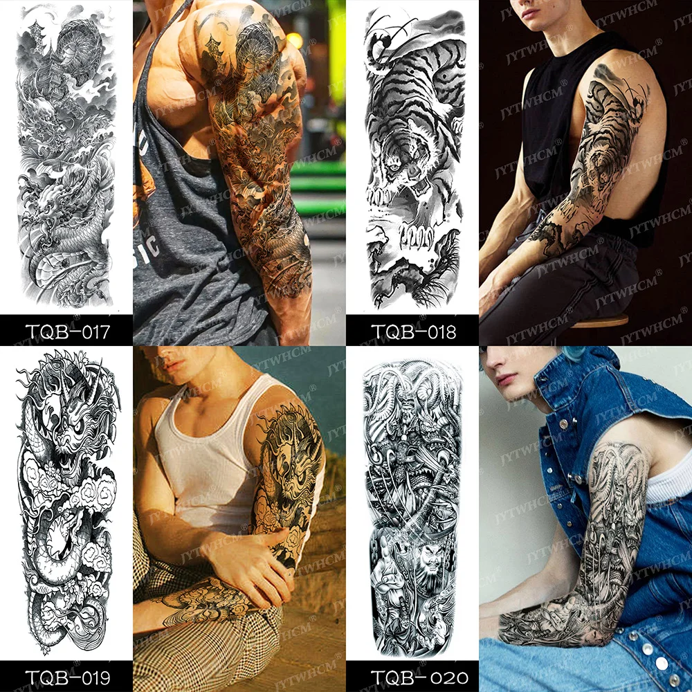 Большая рука рукав тату Дракон Тигр Лев Волк череп Водонепроницаемая временная татуировка наклейка классная боди-арт поддельная татуировка для мужчин и женщин мужчин