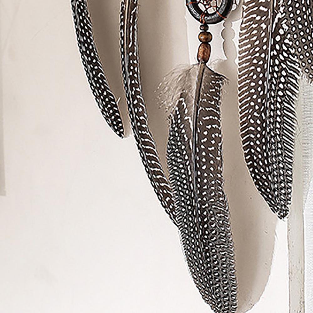 Материал: перо, деревянные бусины, железный круг