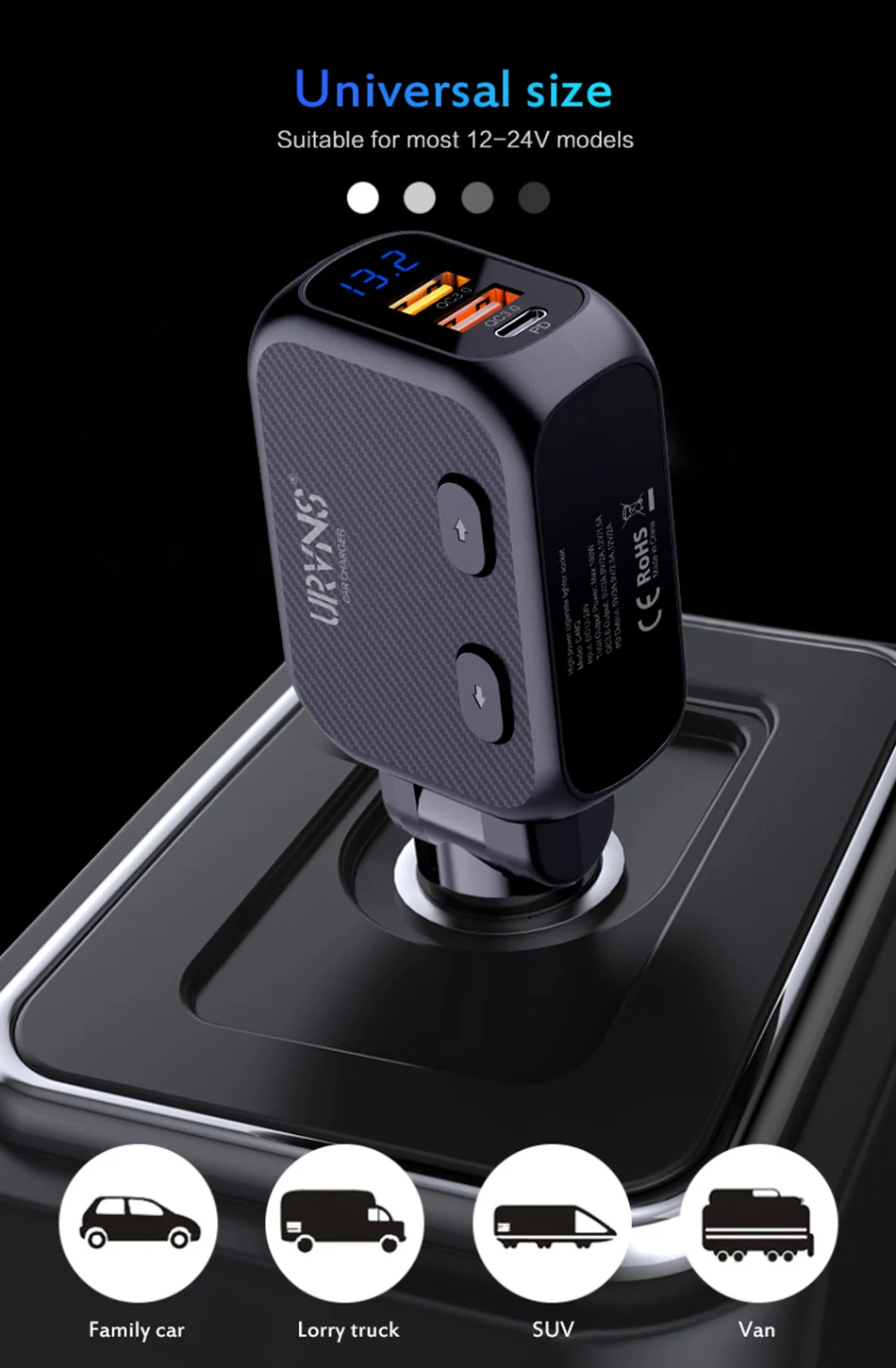 URVNS розетка для автомобильного прикуривателя Разветвитель зарядное устройство с двойной 18 Вт QC 3,0 и 20 Вт USB C Быстрая зарядка Авто адаптер питания вилка