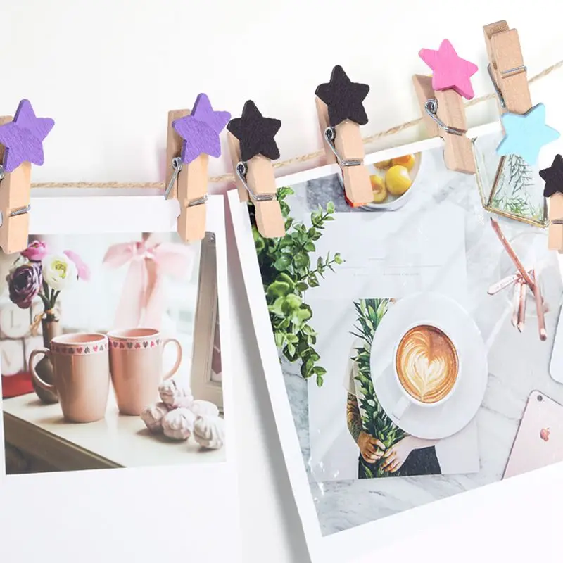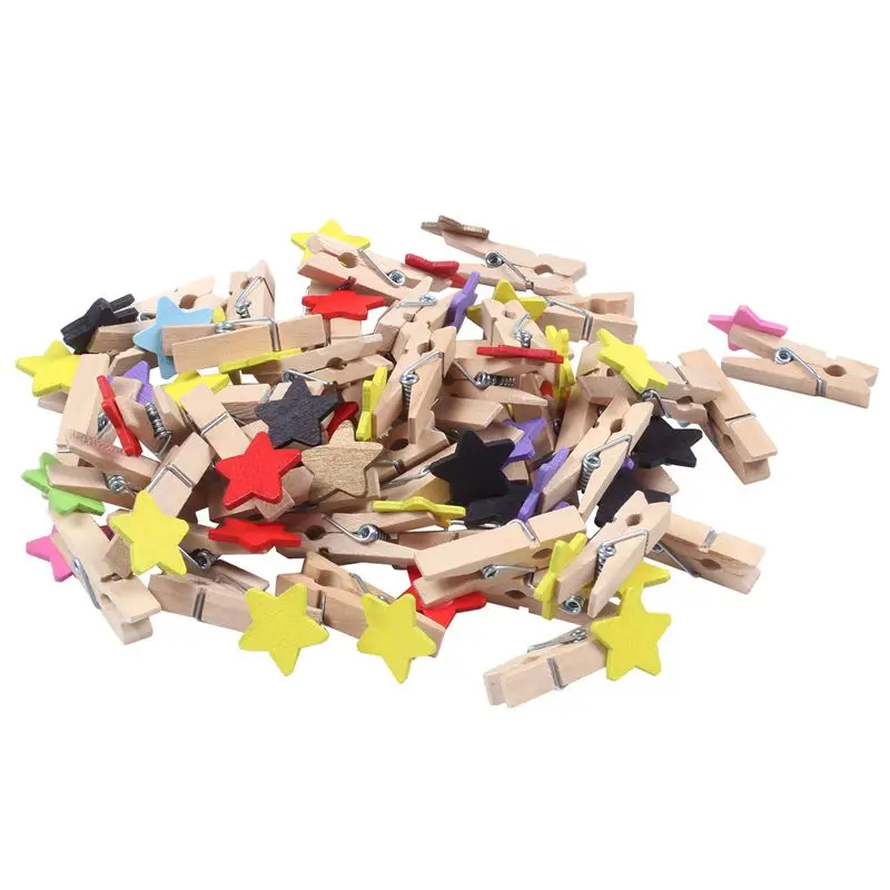 50 штук мини деревянная цветная одежда звезды висячая карта фото Памятка клип прищепка смешанный цвет