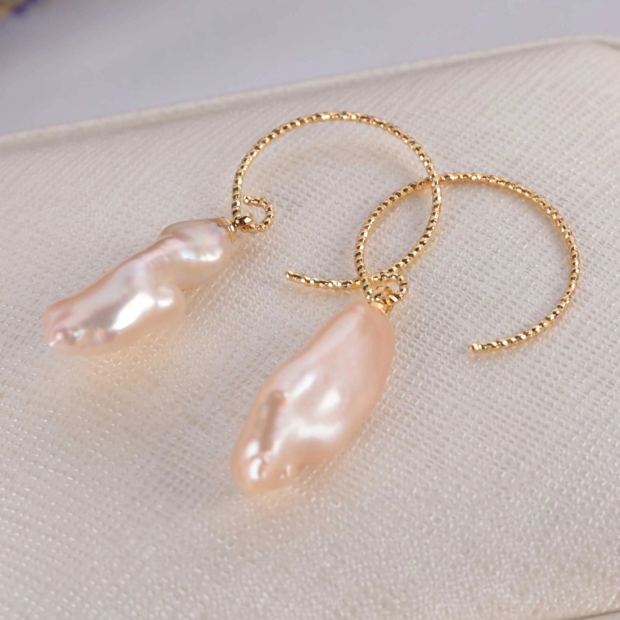Серьги с натуральным розовым жемчугом в стиле барокко, 18k, модные свадебные женские вечерние серьги в классическом стиле