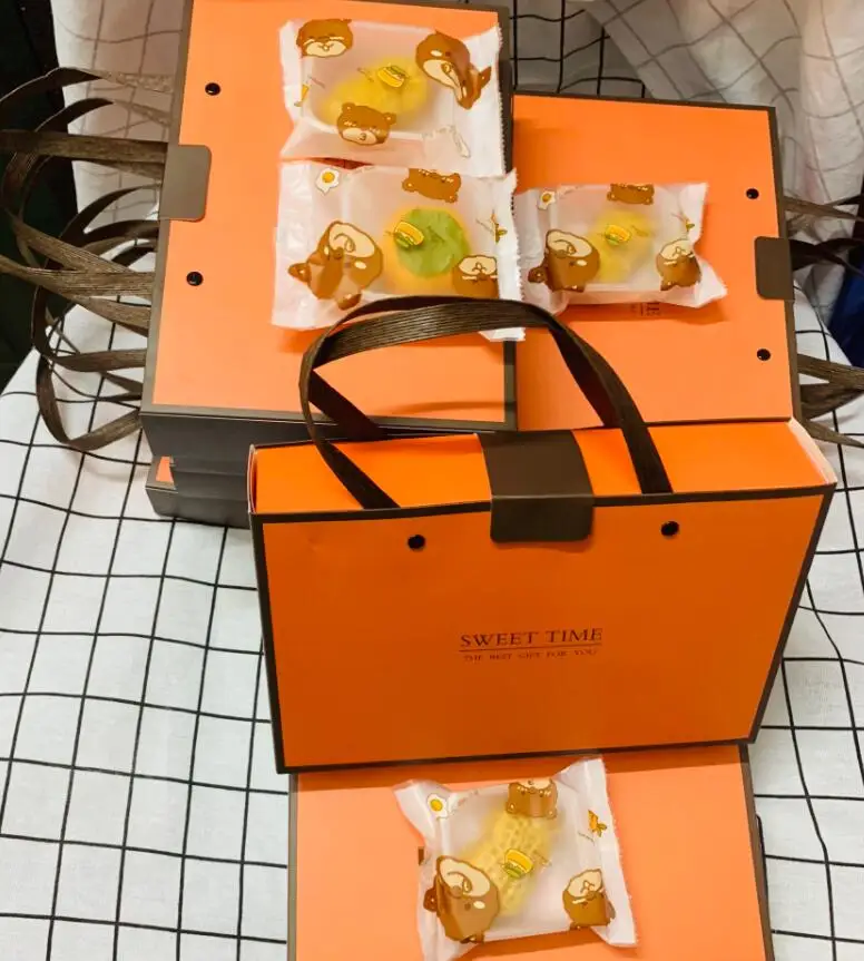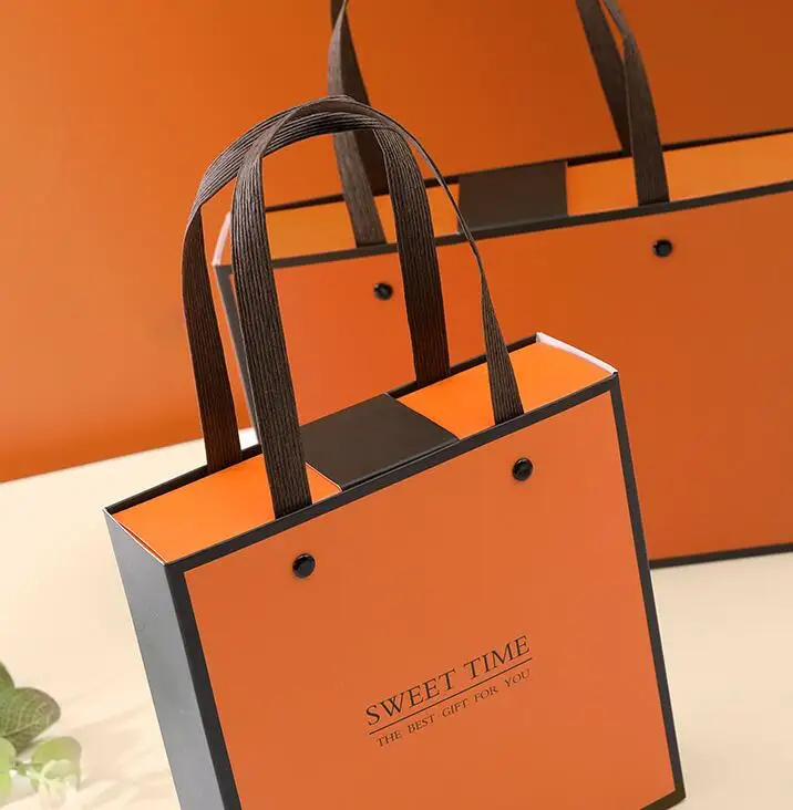 Модная Портативная Подарочная коробка с оранжевым и белым принтом, большие размеры, вечерние подарочные коробки для торта, конфет, шоколада, Подарочная коробка B831D