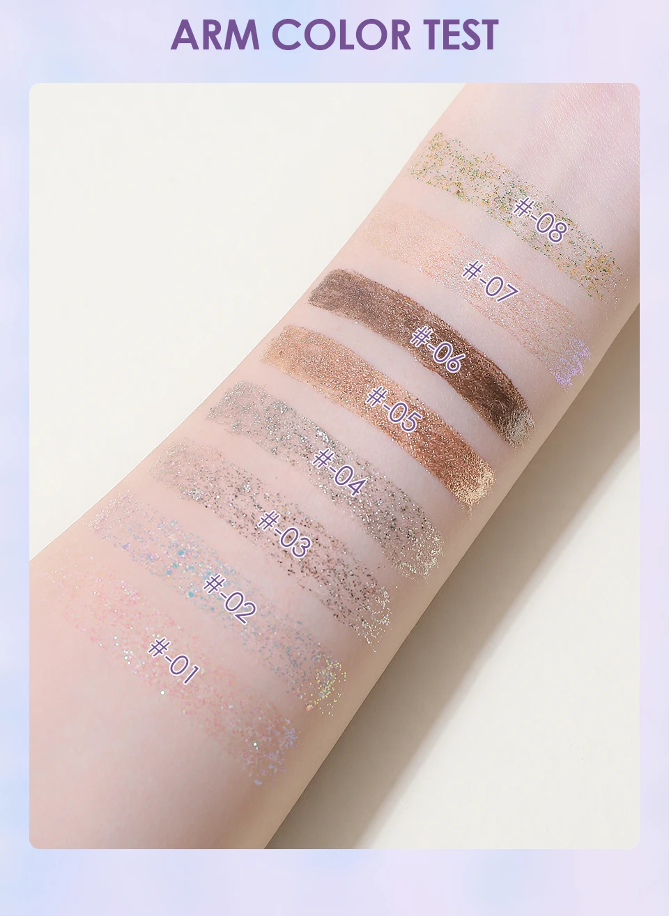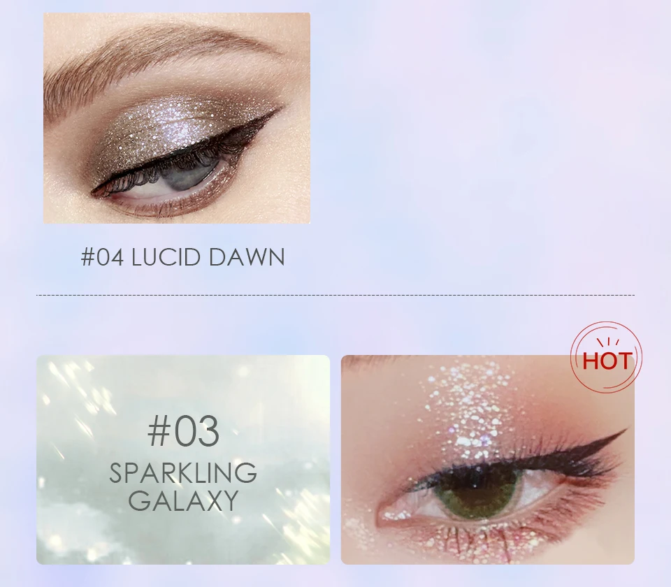 【Glitter жидкости Eyeshadow】The с изображениями искрящихся влажным блеском тени для век, предназначенный для блеск и мерцание глаз выглядит, которая успешно прожекторы контура глаз И сделать вас быть внимание приманкой в каждом мероприятии.