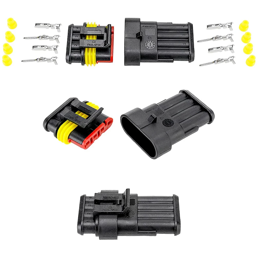 4 broches: (6 jeux) 6 x connecteur mâle, 6 x connecteur de boîtier femelle, 24 x broche mâle, 24 x broche femelle, 48 x prise étanche en silicone