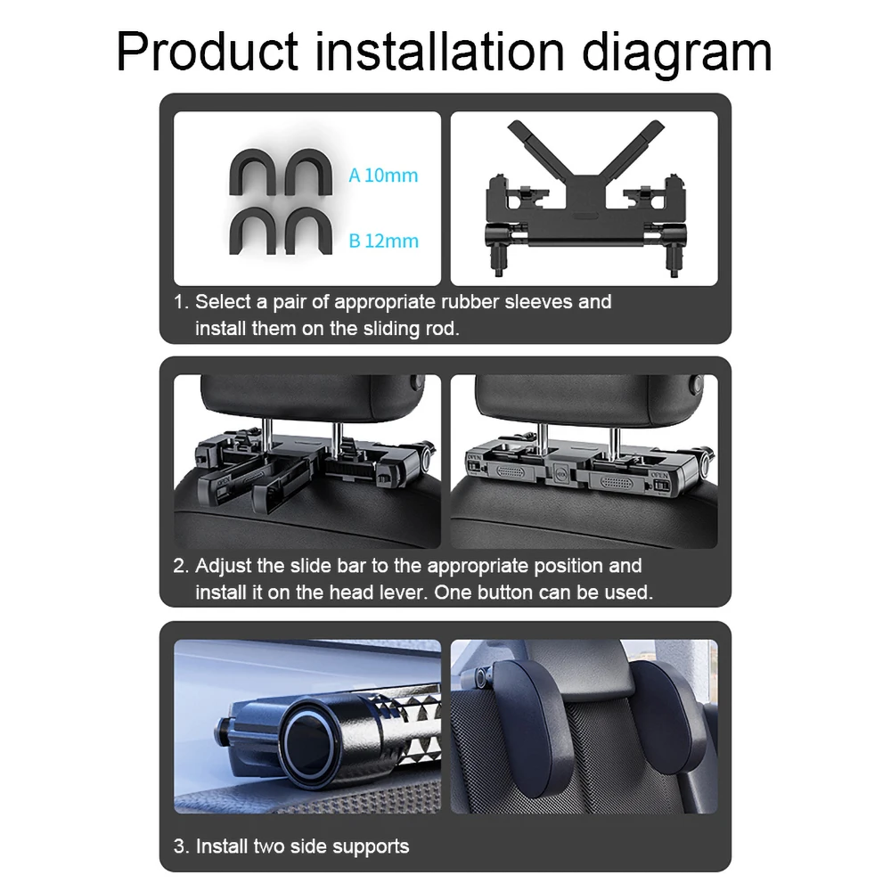 1. Подходит только для подголовников автомобильных сидений с круглыми стержнями. Расстояние стержня должно быть от 7 до 16 см. Подходящие резиновые рукава можно выбрать в соответствии с размером раздвижная Удочка модели.