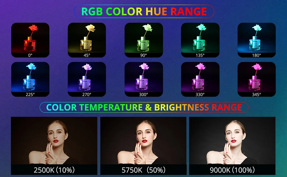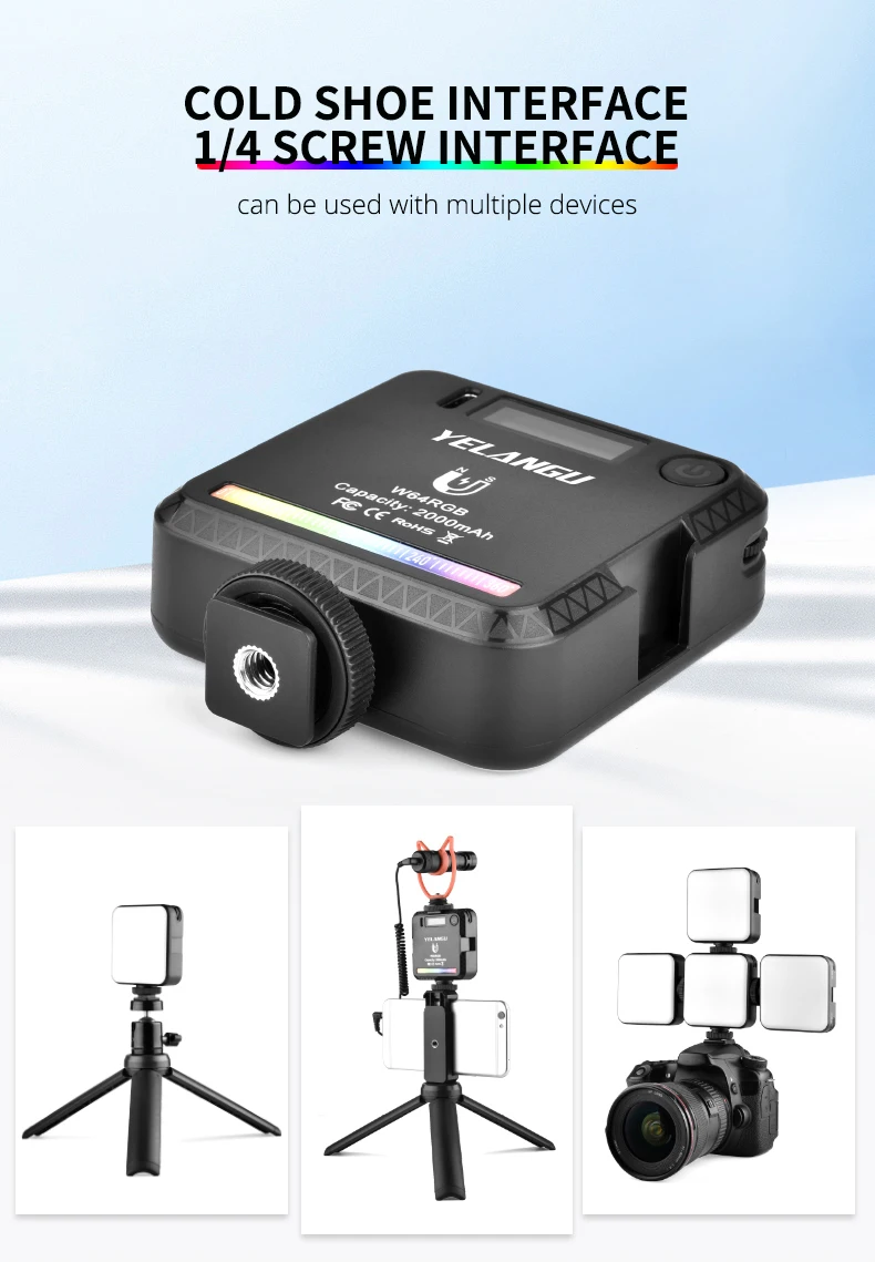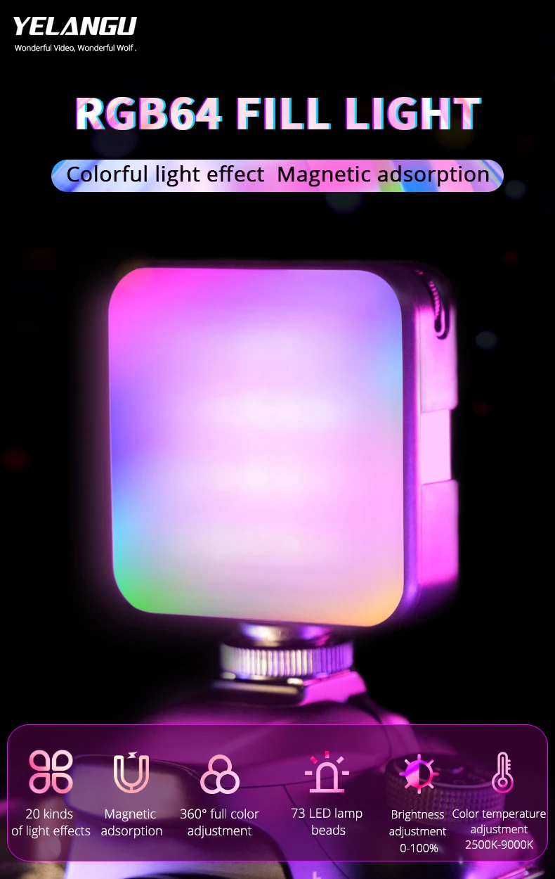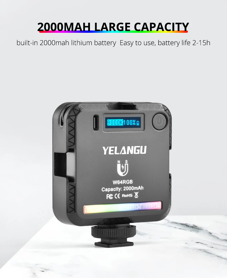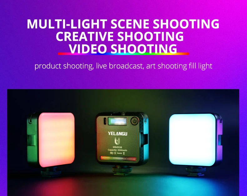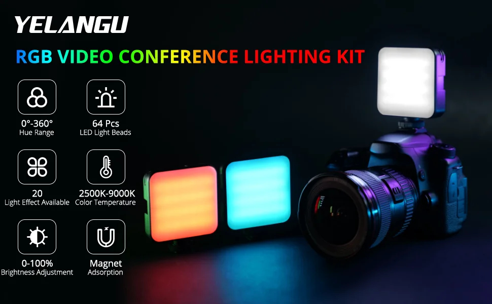 W64-это профессиональный светильник для видеоконференции RGB, который предлагает красочный светильник ing. С3 режима работы(RGB, CCT и режим сцены) встроенный, он поддерживает0-360 ° RGB, Двухцветная температура с регулируемой яркостью2500K-9000K и регулировка яркости от 0%-100%, и 20 режимов сцены для имитации спецэффектов. Он принимает четкий ЖК-дисплей. Светодиодный индекс цветопередачи ≥ 95, воспроизведение истинного цвета