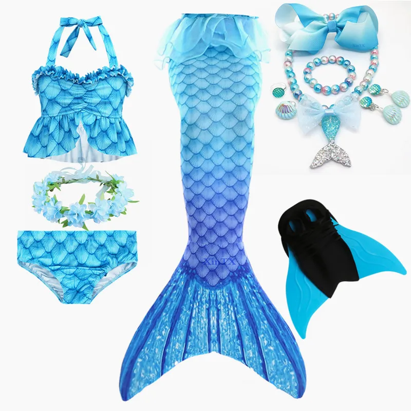 6 шт.: 1 * хвост русалки + 1 * бюстгальтер + 1 * шорты + 1 * монофин + 1 * головной убор + 1 * ожерелье