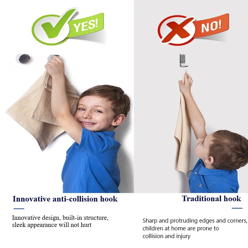 Держатель для полотенец имеет круглую конструкцию и округлую конструкцию против столкновений, поэтому пожилым людям или детям не будет причинен вред при контакте с ним.