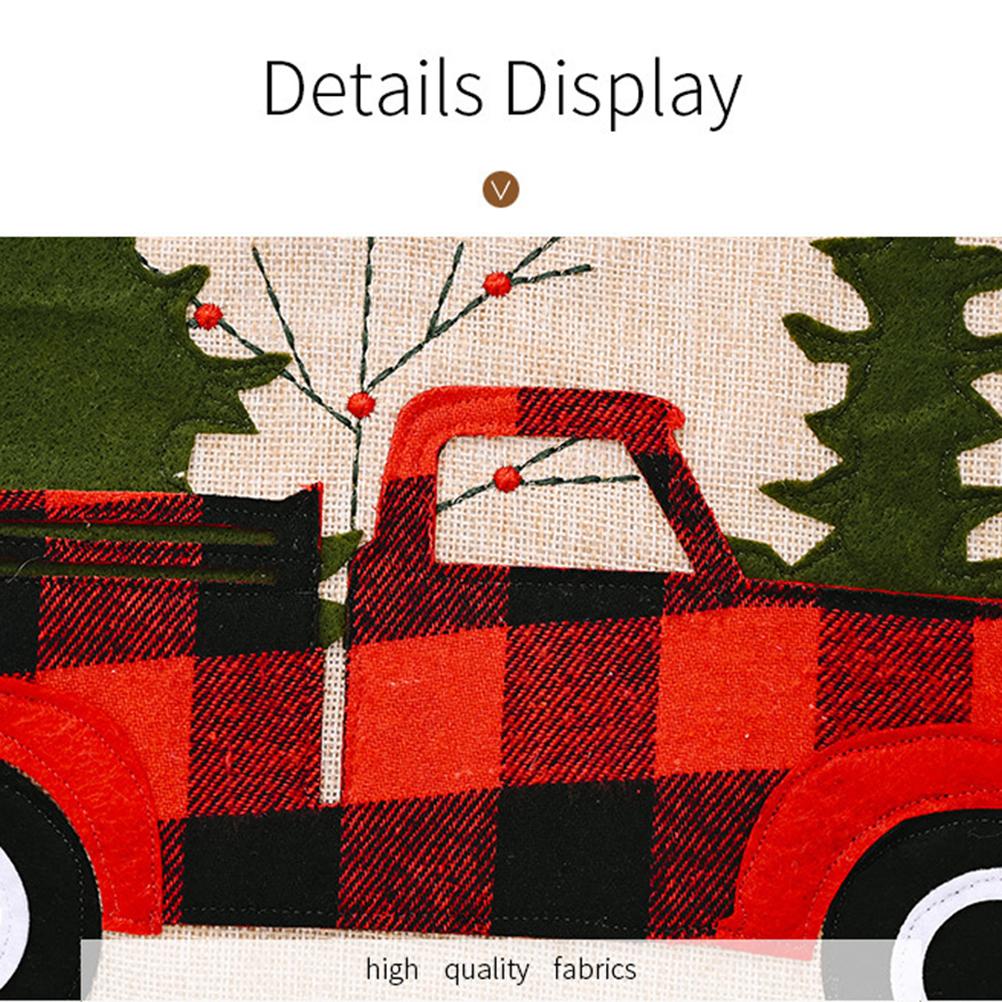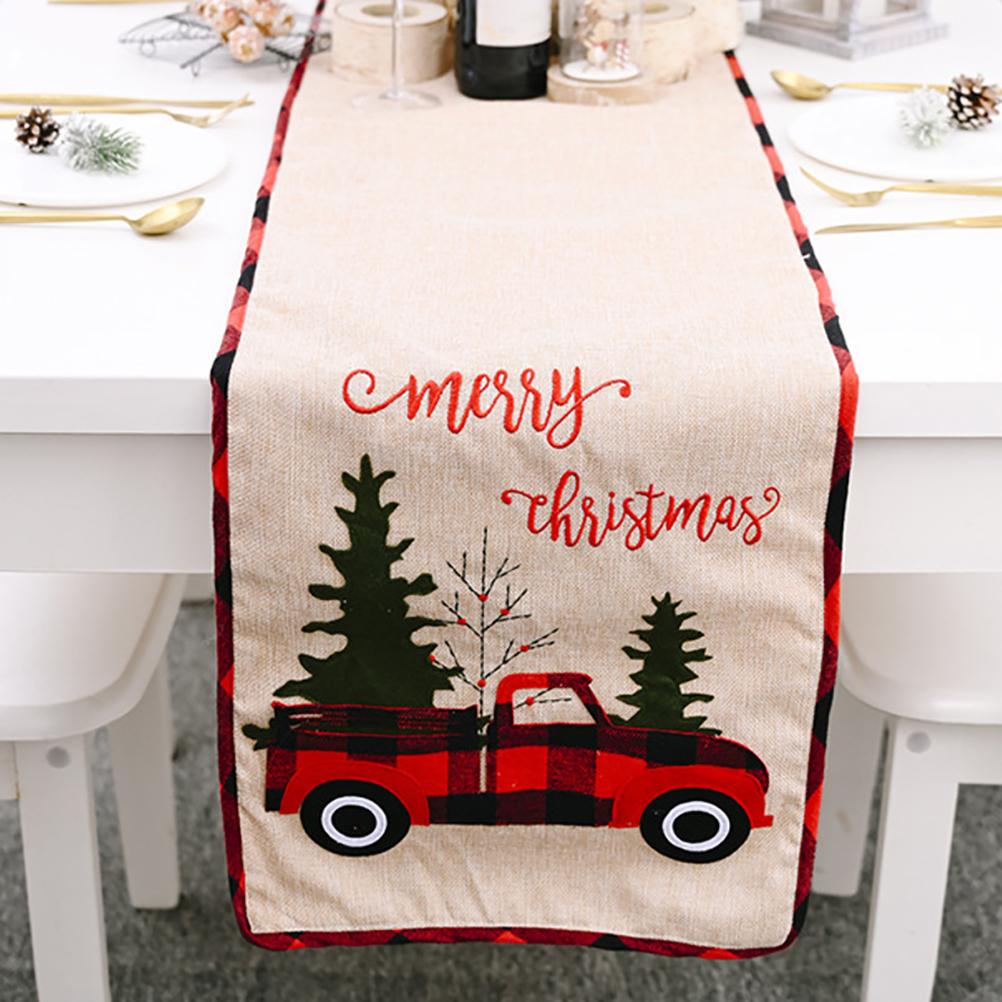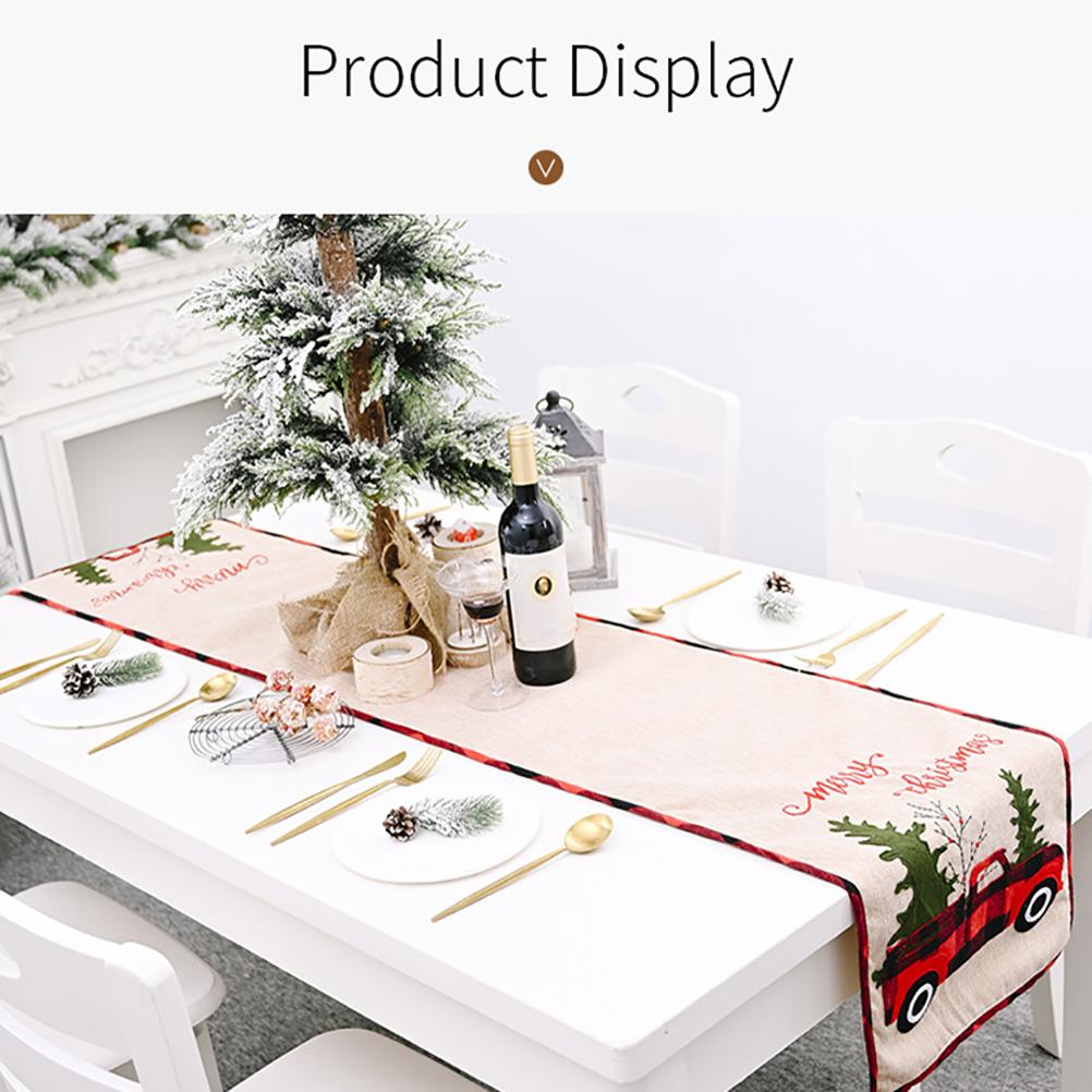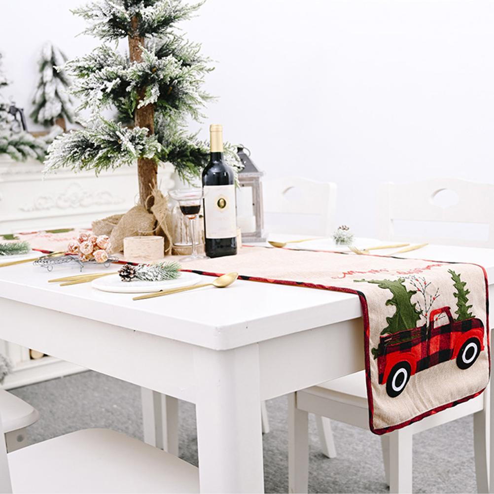 1. Красивый Рождественский бегун: Рождественская вышивка мешковины Рождественский настольный бегун с красной деревом грузовика, деревенский и радостный внешний вид. Он очень подходит для украшения рабочего стола во время рождественского сезона для семейных праздников.