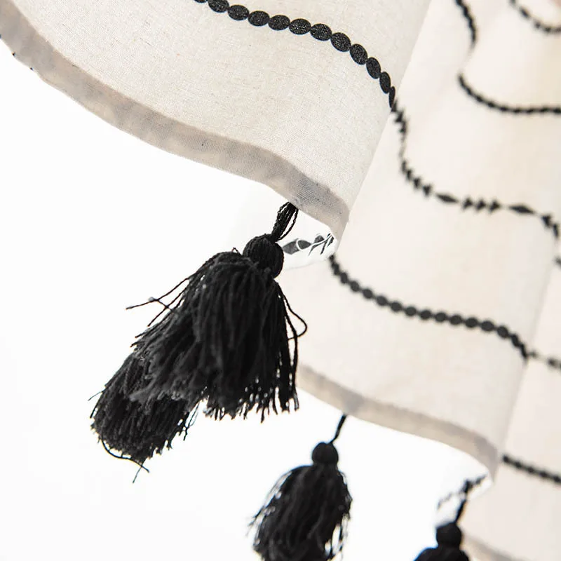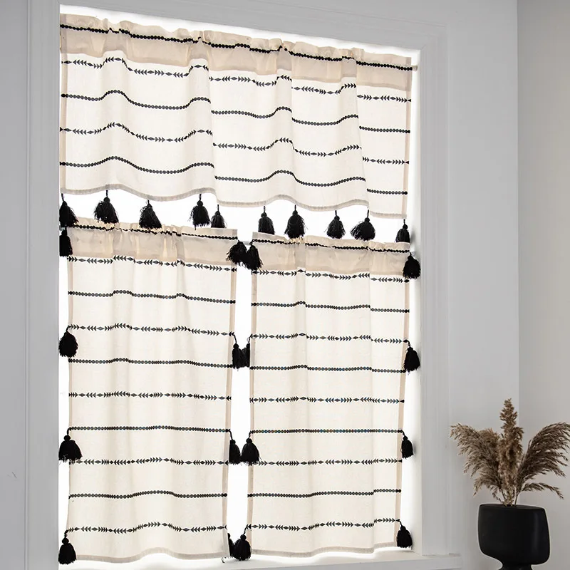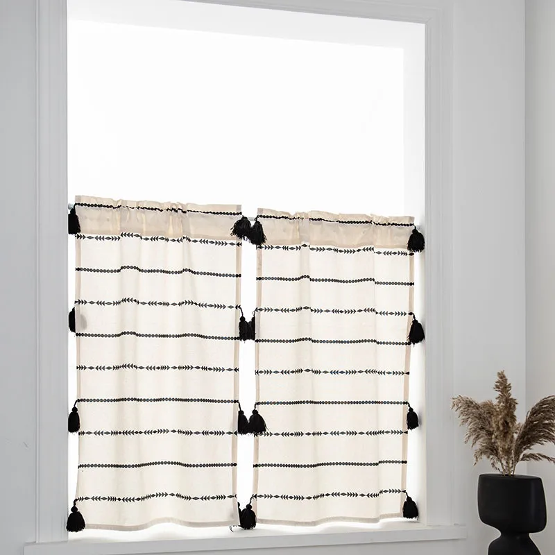 Наши Бохо окна Valance с кистями, черный цвет слоновой кости полосатый Винтажный шик комнаты затемнение кухни Шторы Valance s для ванной гостиной декоры.