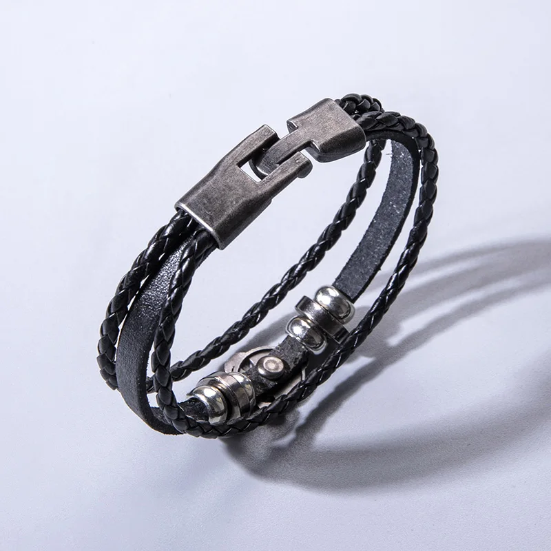 Винтажный многослойный Плетеный Кожаный Браслет, панк античный посеребренный браслет, браслеты викингов для мужчин и женщин
