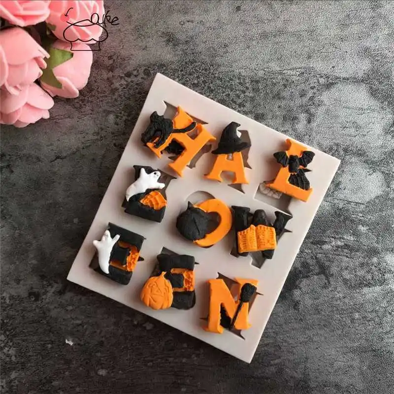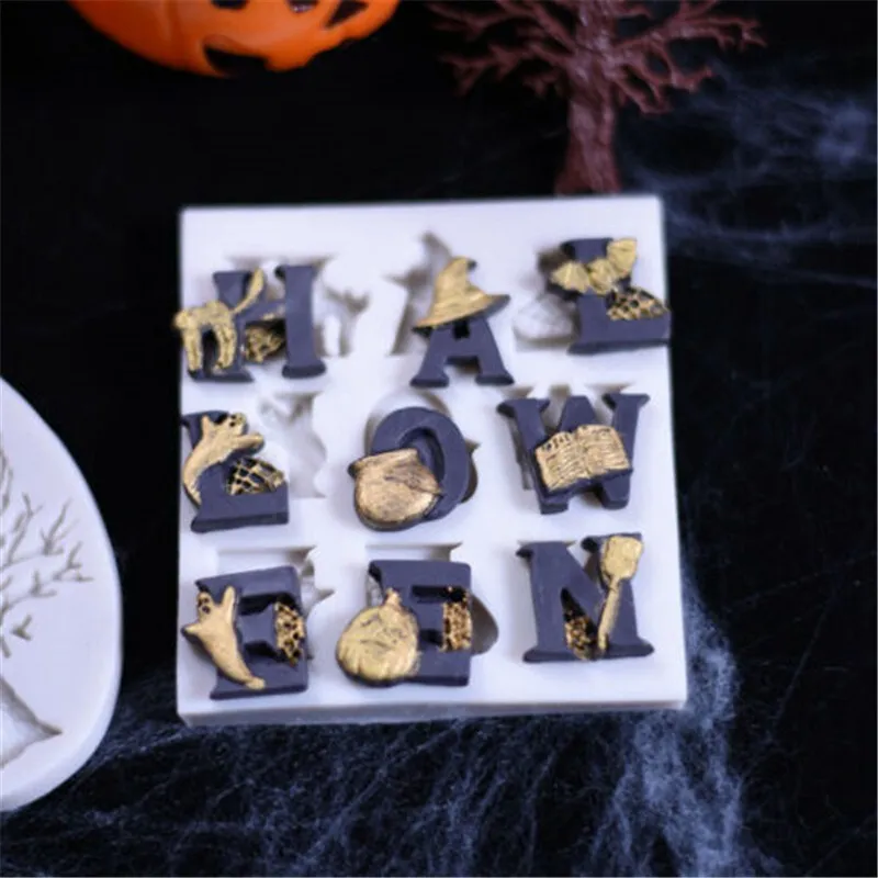Для выпекания хлебобулочных изделий Ремесла силиконовые алфавит для Хэллоуина с надписью "сделай сам" пресс-форма для шоколада, помадки силиконовой формы