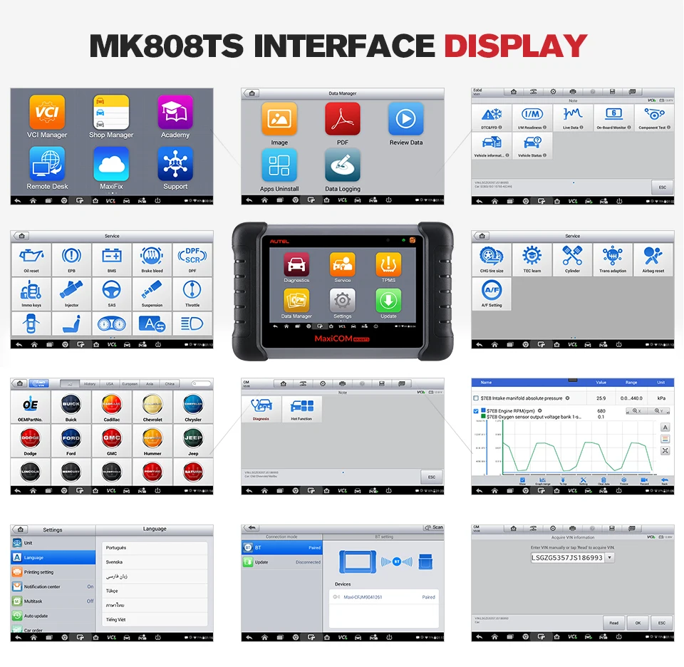 As an advanced diagnostic tool, MK808TS has all kinds of services accessible for complete diagnoses and maintenance. You can quickly access to the vehicle systems within this function.