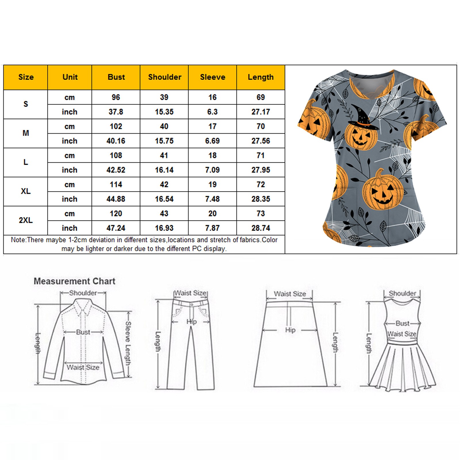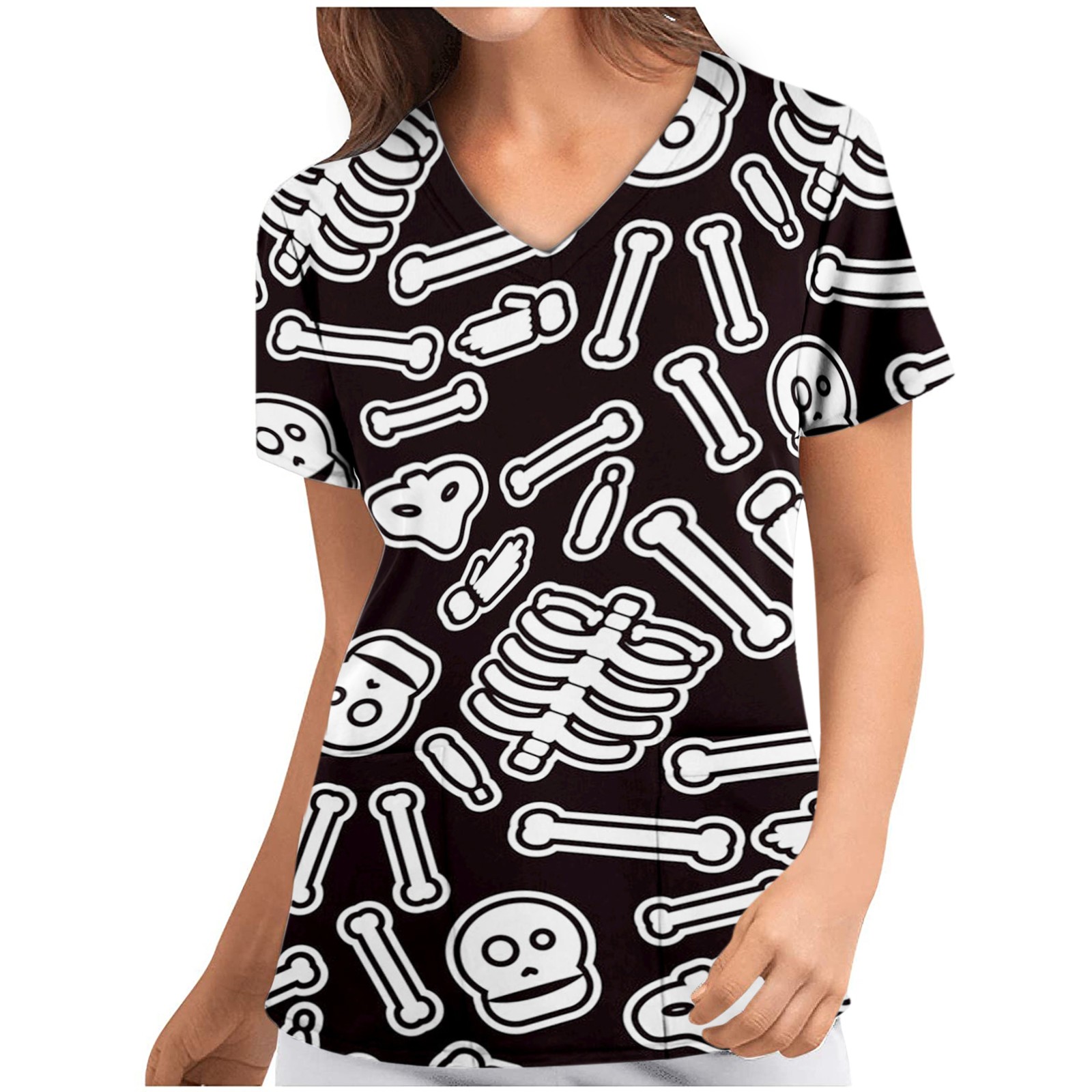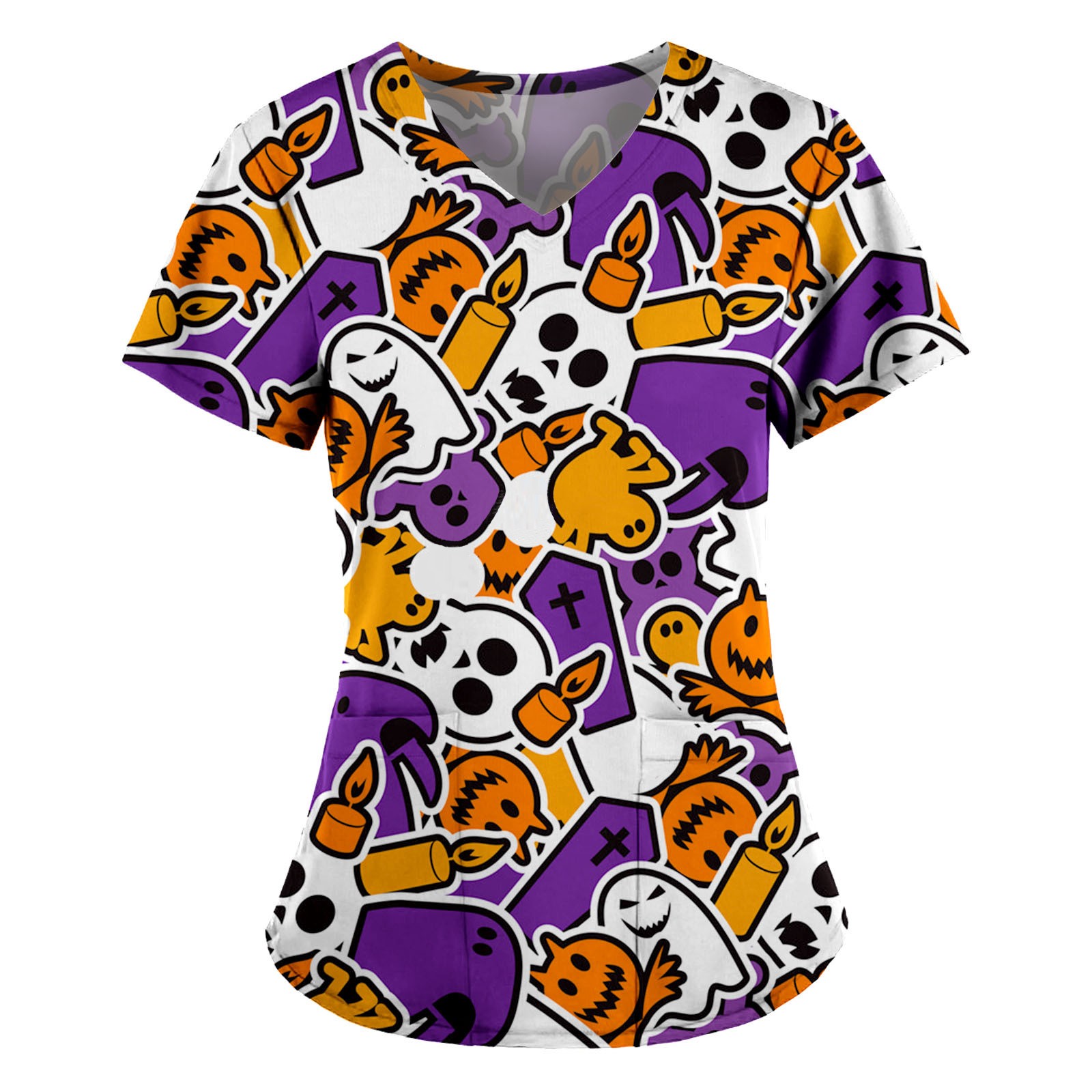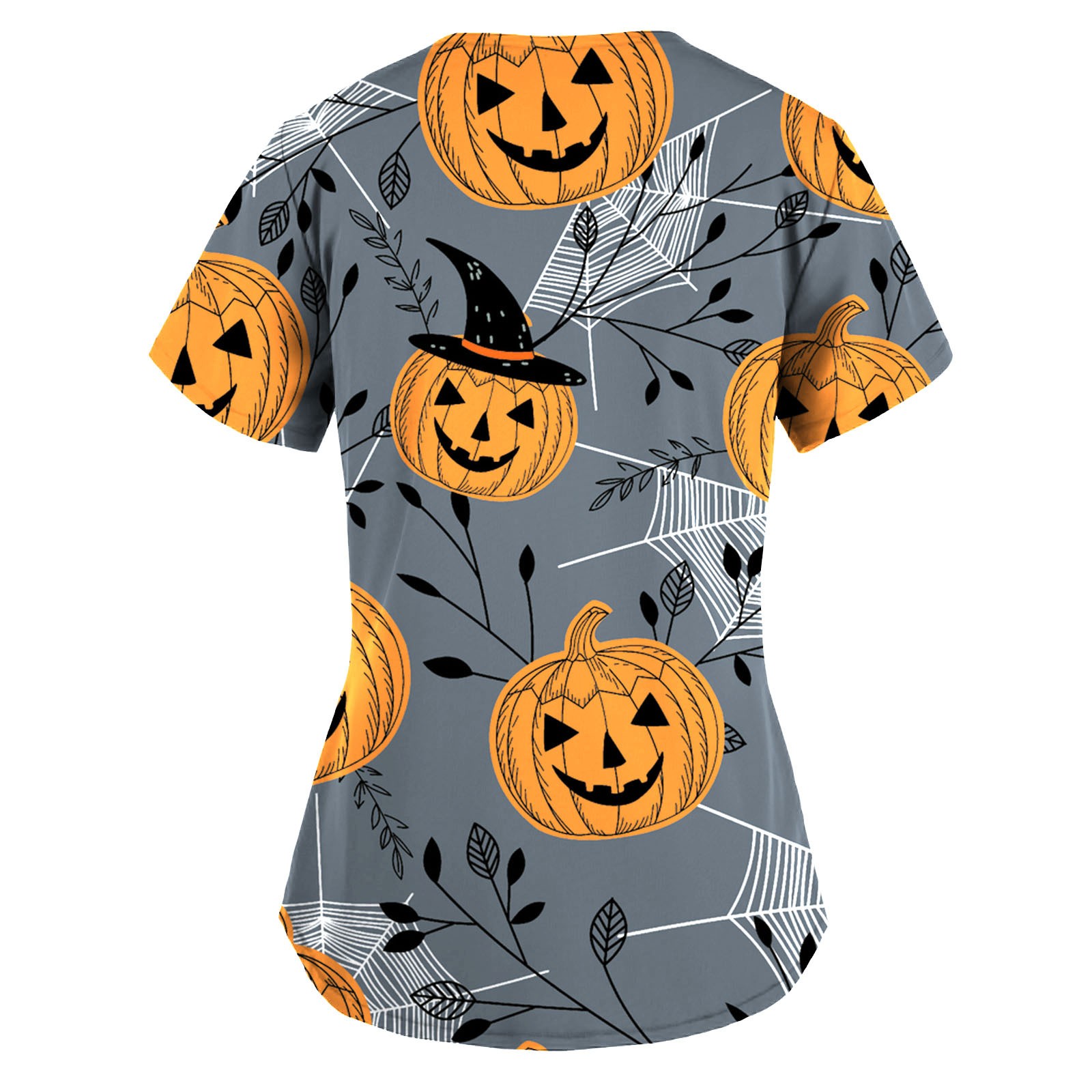 Женский топ с коротким рукавом и v-образным вырезом с рисунком тыквы на Хэллоуин, футболки для медсестер