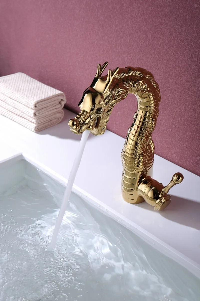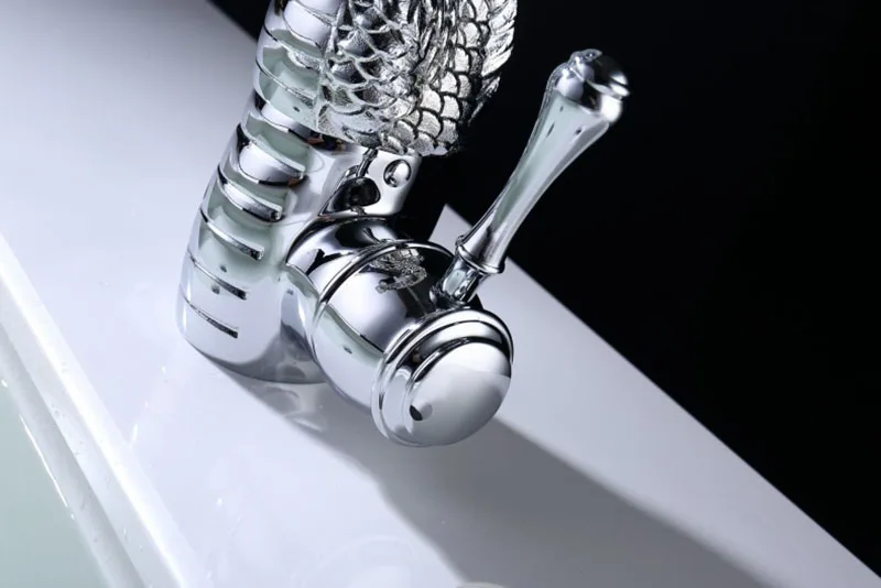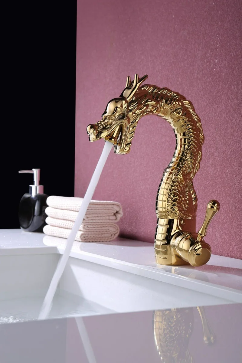 Basin Faucet Mixer Gold Dragon Bathroom Faucet Sink Faucet Single Hole Chrome Faucet Basin Taps Deck Vintage Wash Hot & Cold Tap