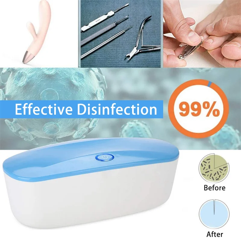 Легко управлять, просто откройте коробку для чистки, поместите предметы, которые вам нужно дезинфицировать, затем закройте крышку и нажмите кнопку питания, чтобы начать стерилизацию.