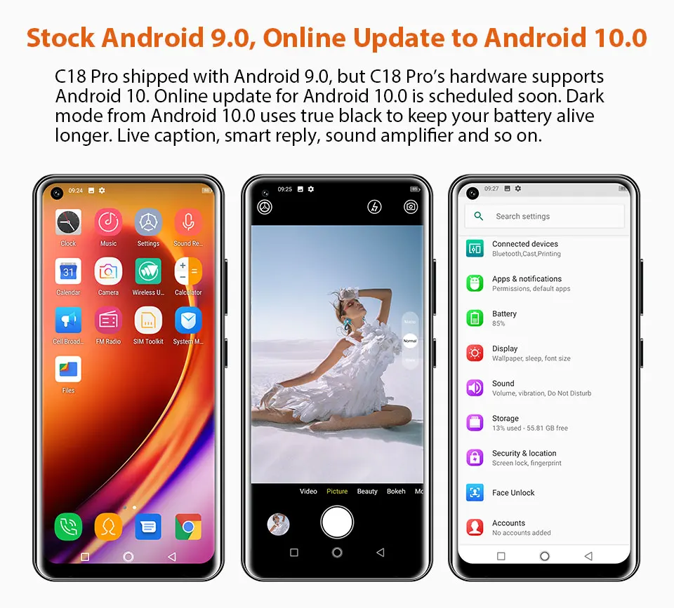 Особенности:6,55 ''FHDЭкстрима полный экранРазблокировка распознавания отпечатков пальцев и лица