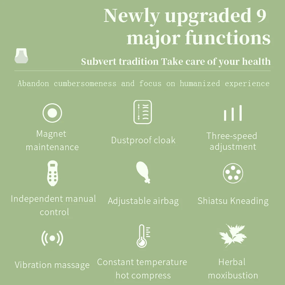 1. Эта усовершенствованная многофункциональная Массажная подушка использует массажную головку 20D для имитации массажа и акупрессуры, оснащенную 10 массажными головками, чтобы помочь вам облегчить боль в мышцах.
