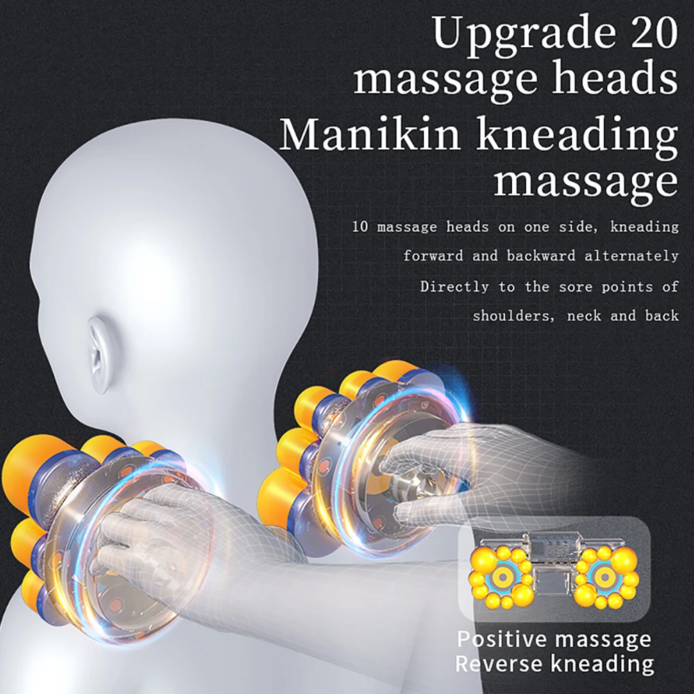 3. S-образная конструкция поддержки шейного отдела позвоночника позволяет большой площади плеча, шеи и спины, чтобы соответствовать изгибам, а модернизированная подушка безопасности может регулировать высоту массажа в соответствии с различными кривыми шейного отдела позвоночника.
