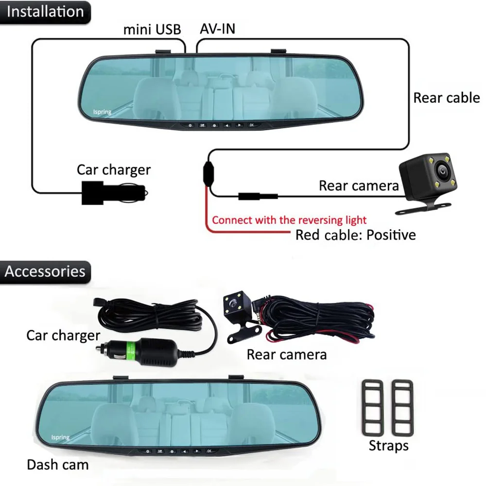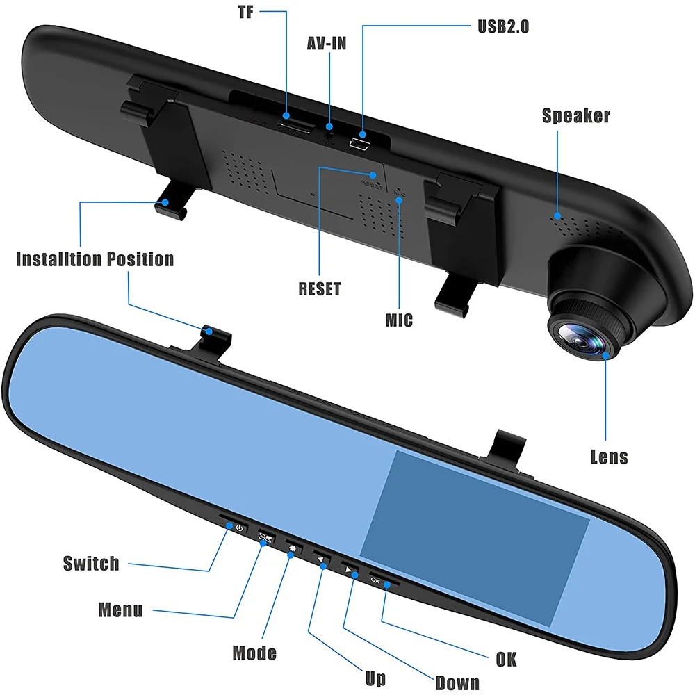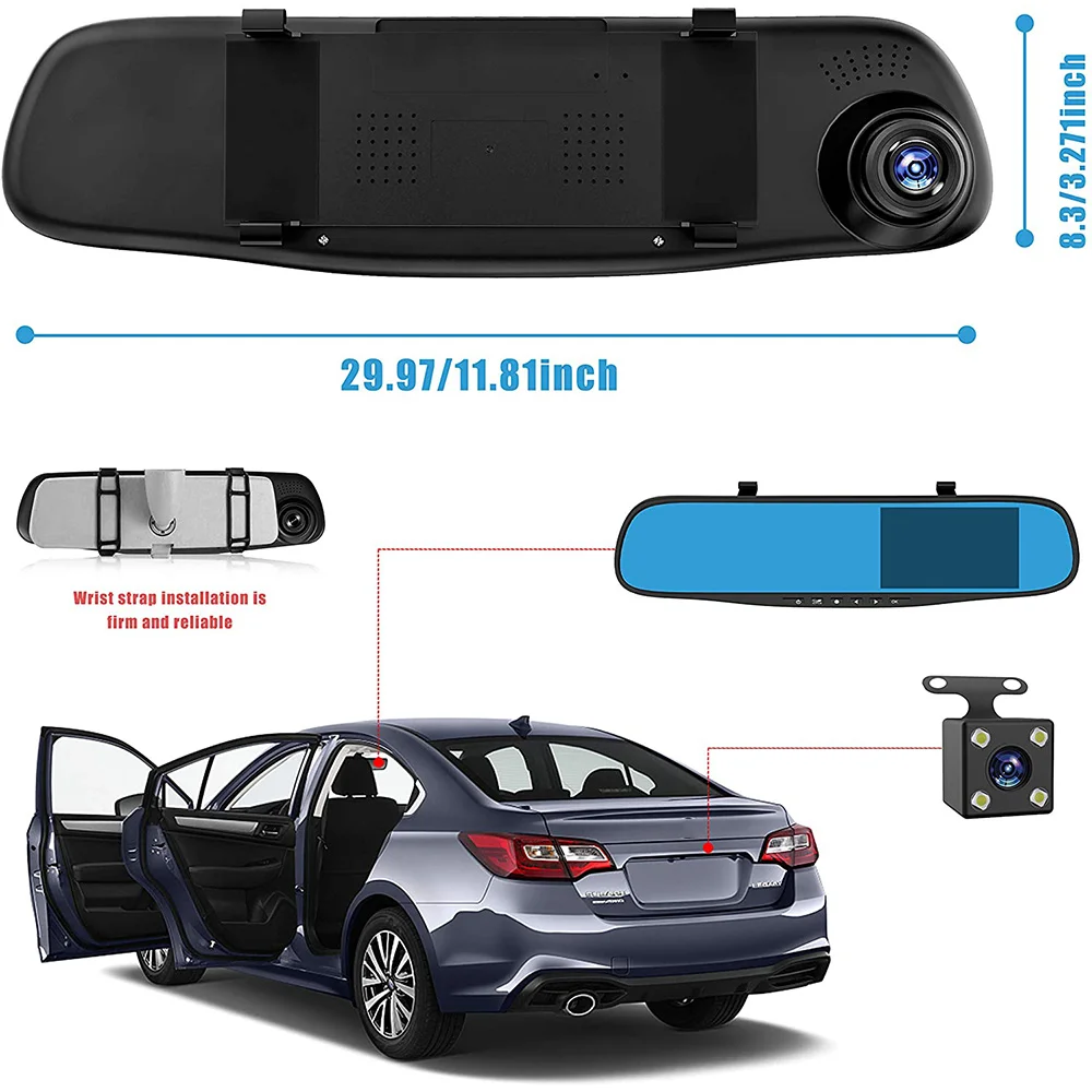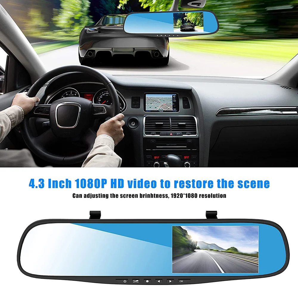 4,3 дюймовое зеркало Автомобильный видеорегистратор двойной объектив видеорегистратор Драйвер Зеркало заднего вида видеорегистратор FUll HD фронтальная и задняя камера авто