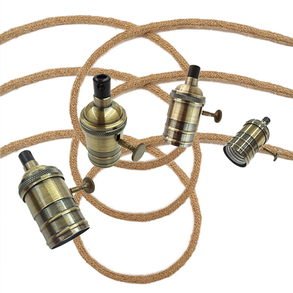 Винтаж подвесной светильник на пеньковой веревке держатель Twiste провода с европейской вилкой Мощность шнур ретро конопляным шнуром с переключателем E27 Эдисон лампы Ретро Мощность шнур для подвесной светильник шнур наборы для ухода за кожей