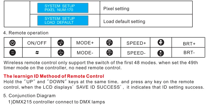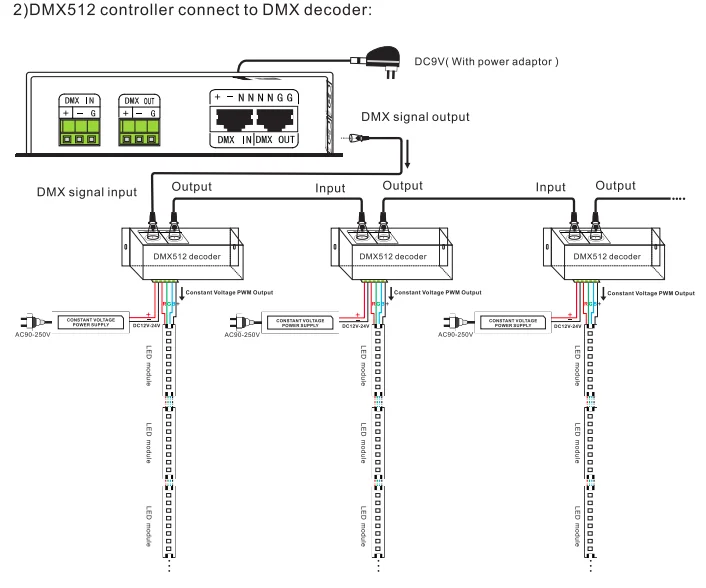 5. Стандартный выходной сигнал DMX512/1990, может управлять 170 пикселей.