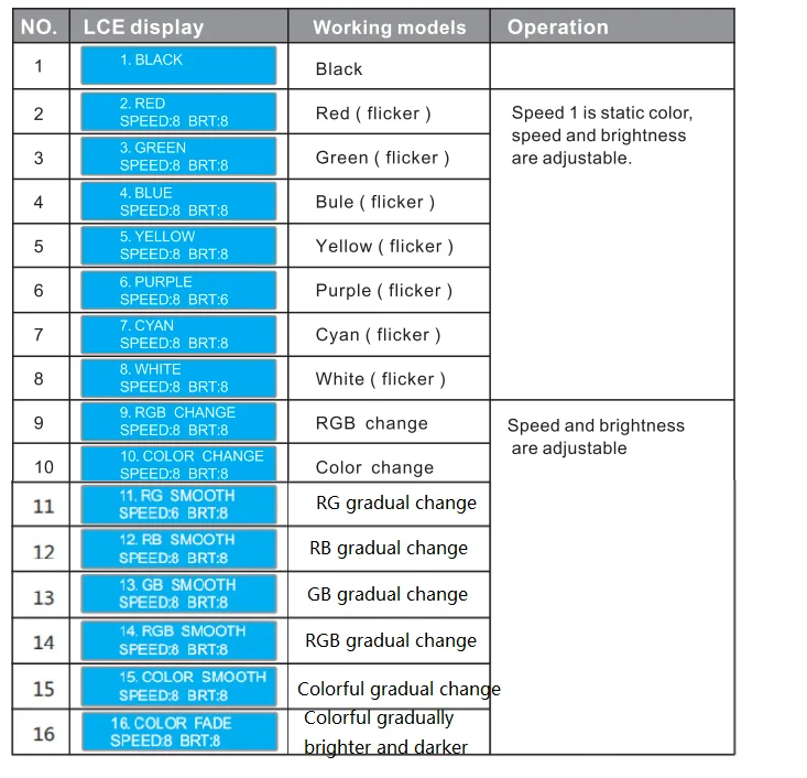 7. С беспроводным пультом дистанционного управления RF, вы можете выбрать изменение режимов, а также контролировать скорость и яркость.