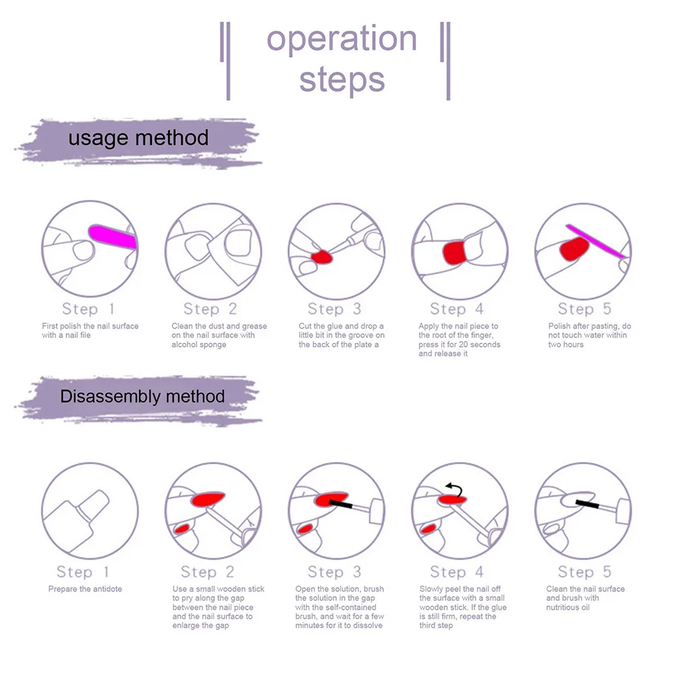 * 2. Простота в эксплуатации. Просто Очистите ногти и выберите правильный размер ногтей, чтобы приклеить к естественным ногтям, и нажмите на несколько минут.
