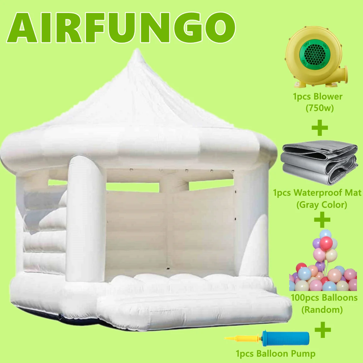 B Happy N Jump теперь имеет этот абсолютно потрясающий, полный белый надувной дом, доступный для использования во время вашего свадебного приема!