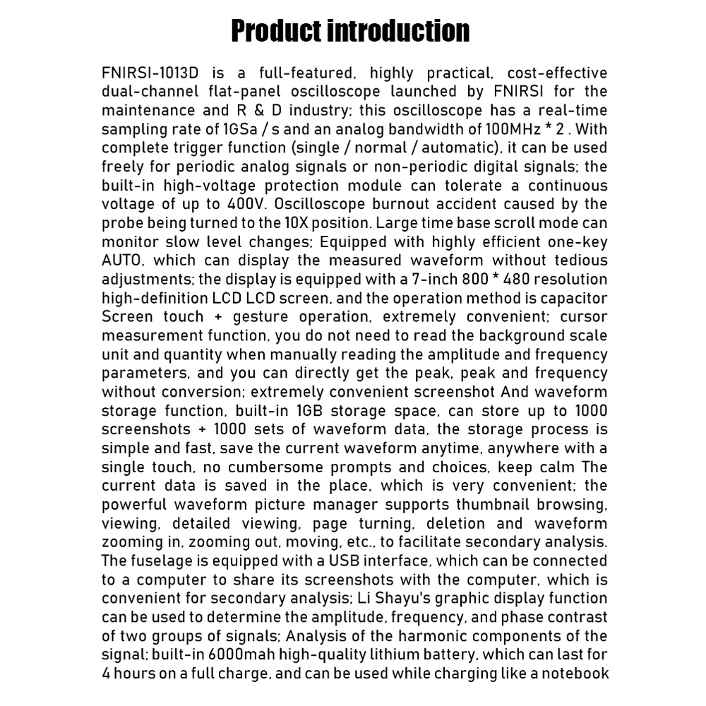 1013D-это полнофункциональный, высокопрактичный, экономичный двухканальный плоский осциллограф для обслуживания и R & D промышленности.