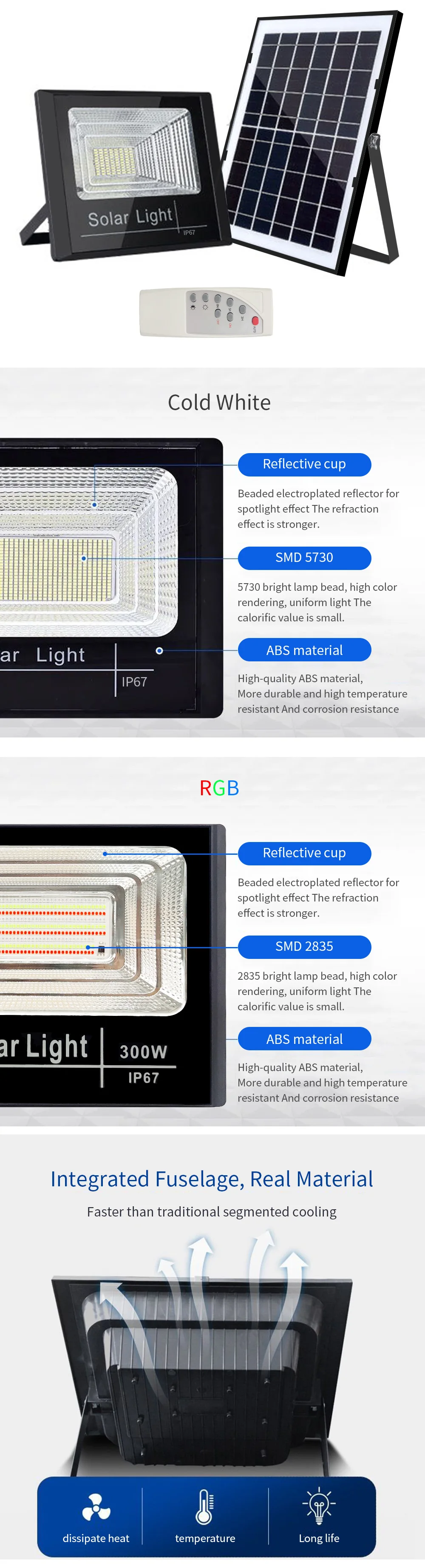 Обратите внимание: мощность прожекторы с солнечной батареей не может сравниться с мощностью обычных прожекторов. При такой же мощности, яркость прожекторы с солнечной батареей будет ниже. Это нормально. Пожалуйста, не оставляйте нам плохой отзыв по этой причине!