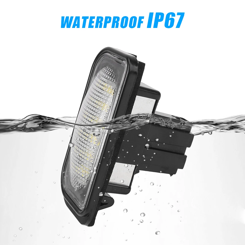 Название продукта: светильник номерного знакаМощность: 2 Вт (1 шт.)Рабочее напряжение: 12 В постоянного токаСветодиодный Цветовая температура: 6500kСрок службы: 50000 часовРабочая температура: -40 °C ~ + 85 °CСтепень водонепроницаемости: IP67Количество бусин (штук): 18 шт.Цвет излучения: белыйOEM: MA2038200256/MA2118200756Фитинги: