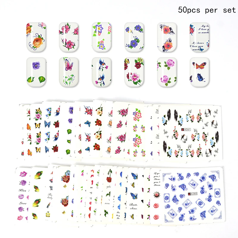 30/50pcs Set Water Transfer Nail Decals