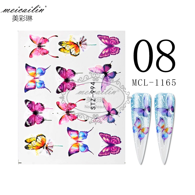 1Set Colorful Slider Flower Butterfly Designs Nail Art Stickers Watermark DIY Water Transfer Nail Decals Tips Manicure Tool