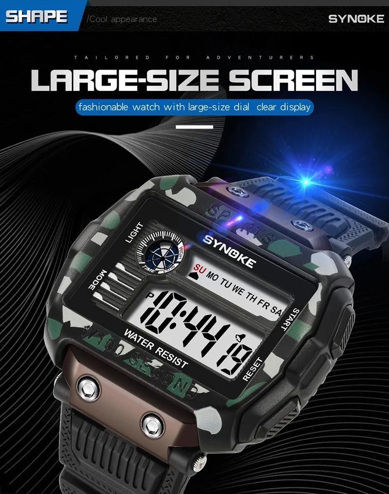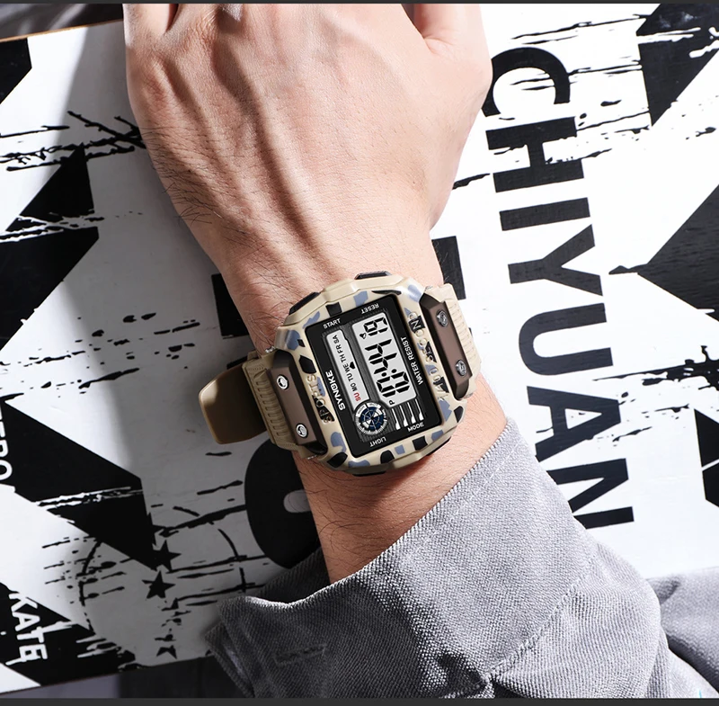 Крутые камуфляжные зеленые мужские часы спортивные 2021 Роскошные Водонепроницаемые светодиодные военные наручные часы квадратные Многофункциональные цифровые часы Hombre