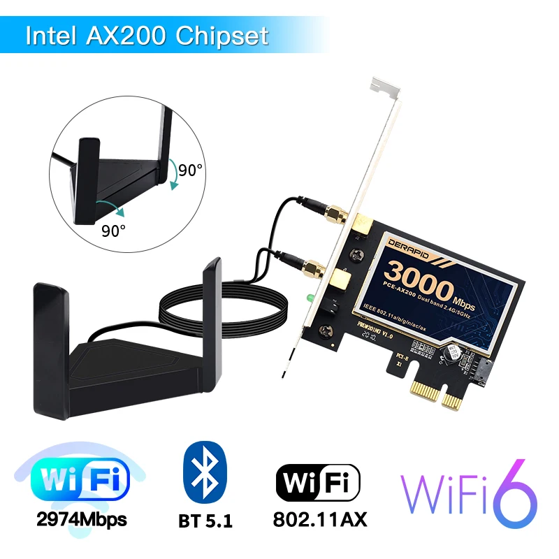 3000 Мбит/с WiFi 6 Intel AX200 беспроводная Wi-Fi карта адаптер Bluetooth 5,1 802.11AX 2,4G/5G PCI-Express настольная ПК сетевая карта