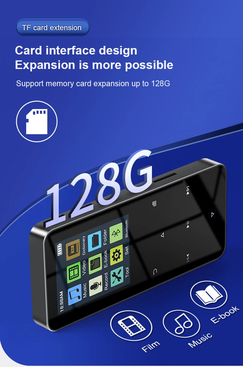 1,8 дюймов MP3 плеер с BT4.2 Встроенный динамик сенсорный ключ 8 Гб оперативной памяти, 16 Гб встроенной памяти, Hi-Fi Металл Мини Портативный Walkman все гольфкарты оснащены радио FM Запись