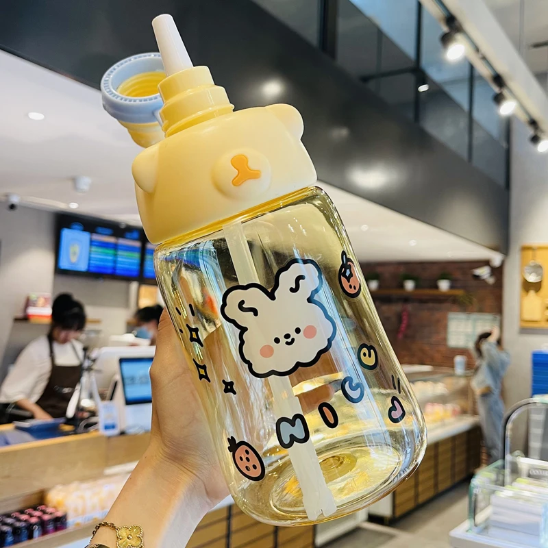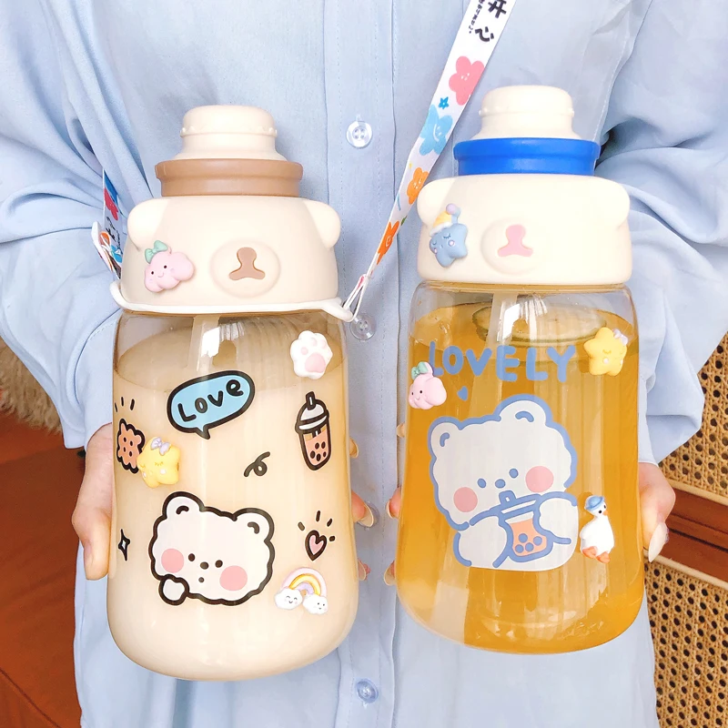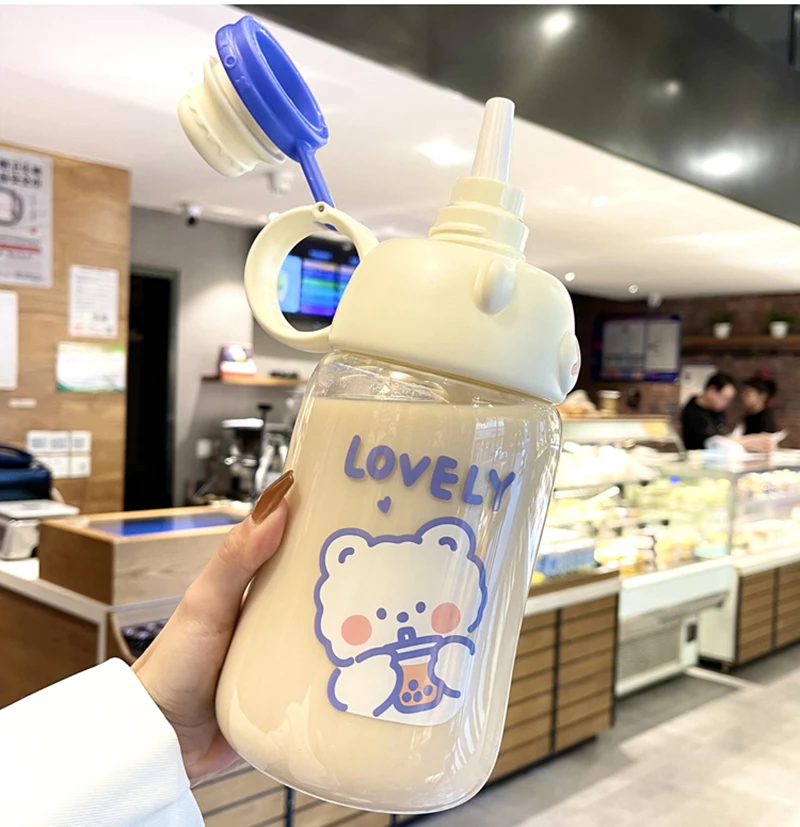 Kawaii Jumbo бутылка для воды с соломенной наклейкой, Спортивная пластиковая портативная бутылка для сока, молока, большой кувшин, BPA бесплатно