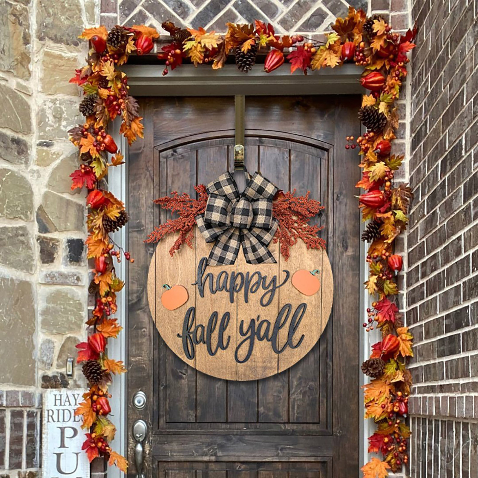 Осветляет Любой декор для передней двери с осенним венком ручной работы. Который принесет Вы хорошая Осенняя атмосфера, делает вашу переднюю подставка на дверь из этого урожая Сезон. Приветствуем друзей и семью с этой красочной и большой передней частью Дверной венок. Он показывает весь осенний сезон, через Хэллоуин и День Благодарения.Материал: дерево