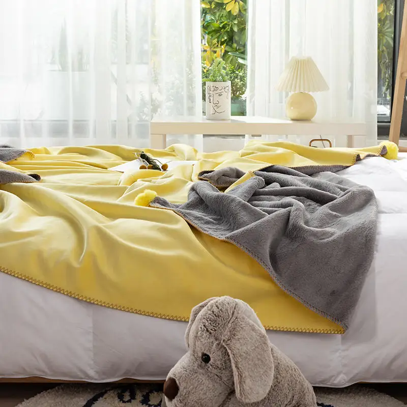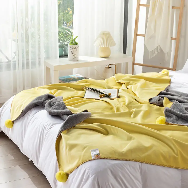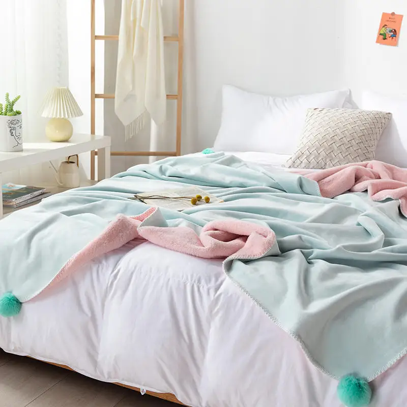 Название продукта: мягкое плюшевое одеяло из двух волокон Ткань изделия: боковой длинный ворс, боковой короткий ворс B Размер продукта: 150*200 см, 200*230 см Вес продукта: 1,6 кг, 2,4 Кг Характеристики продукта: толстый, теплый, стильный дизайн плюшевого мяча Использование продукта: дом, дорожное одеяло, в качестве подарка на день рождения или праздничного подарка